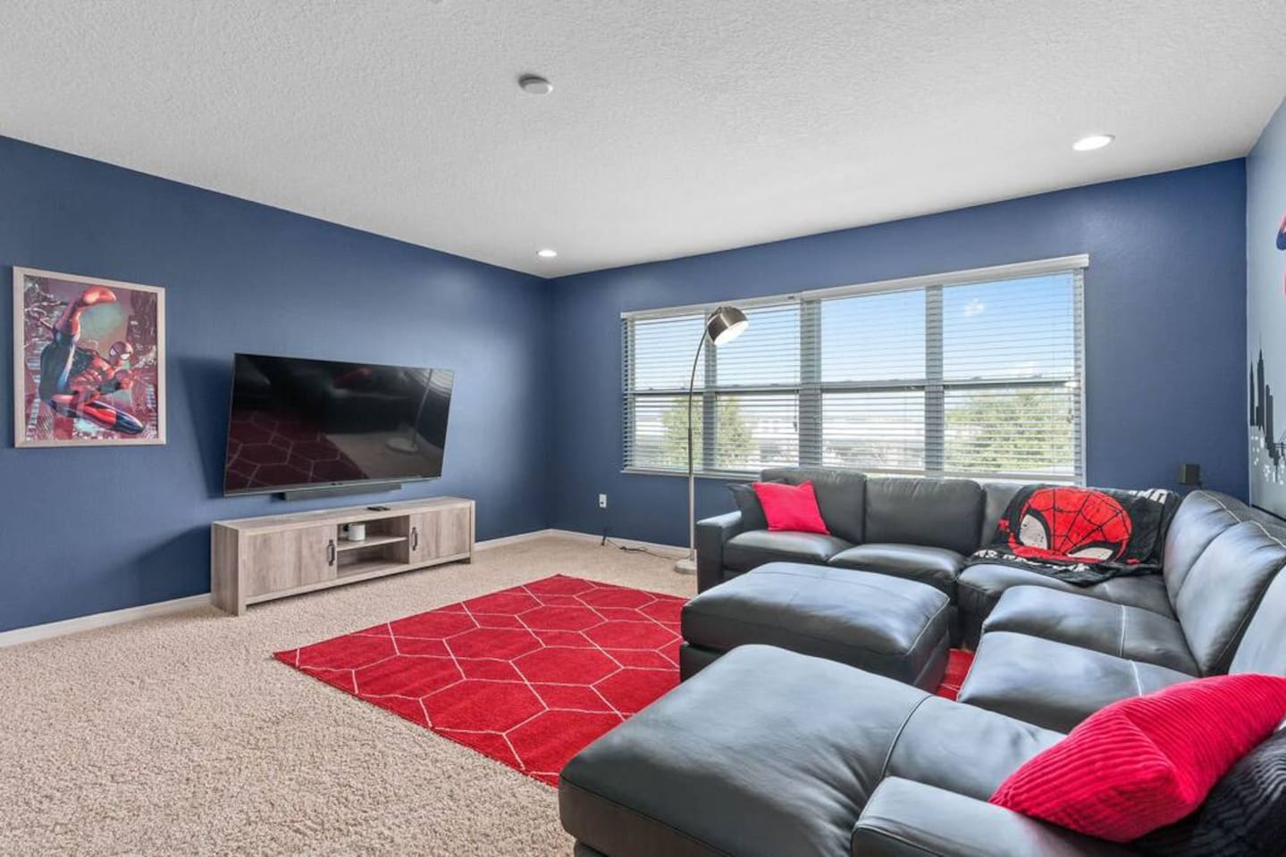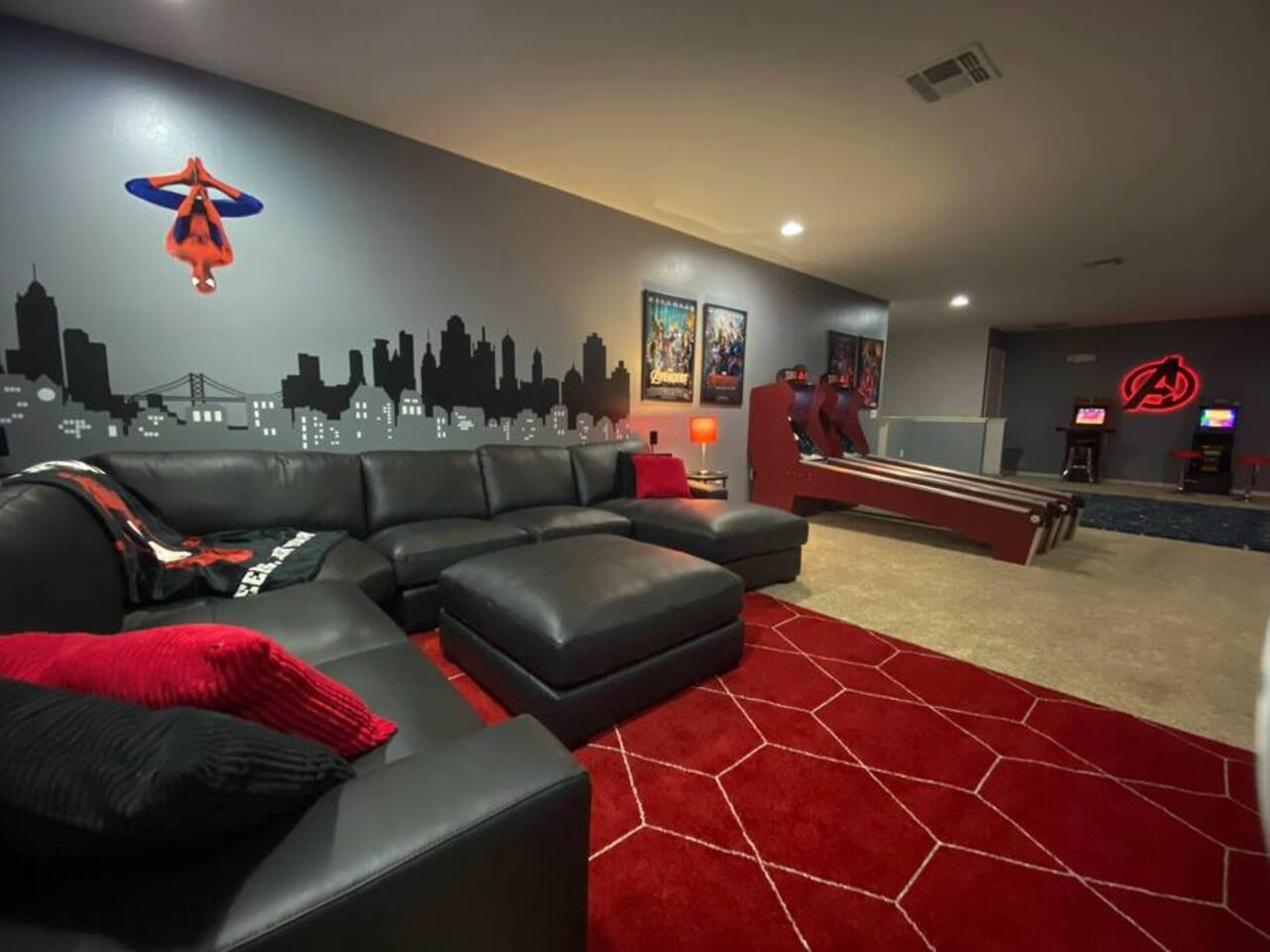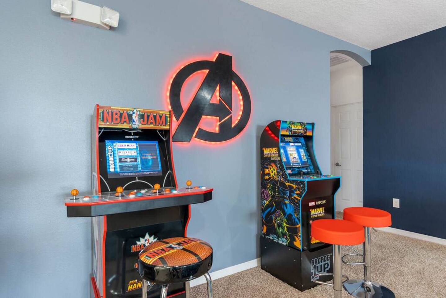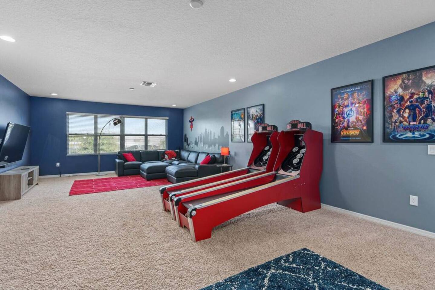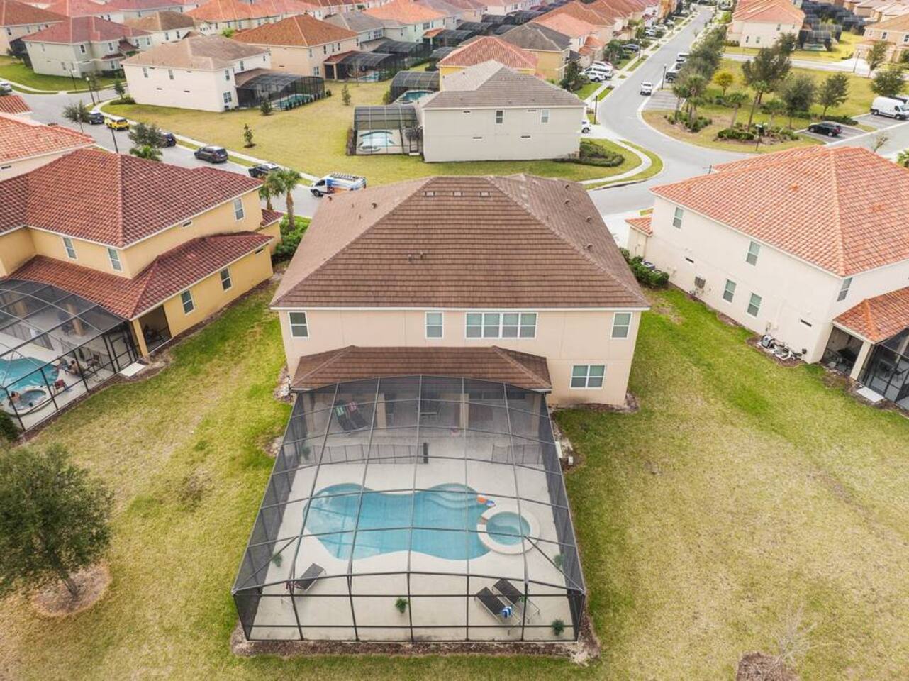 ⭑Bedroom 1 – Floor 1:⭑ ✔ A peaceful queen suite with cozy linens and room-darkening shades ✔ Private en-suite bathroom ⭑Bedroom 2 – Floor 1:⭑ ✔ Elegant King Master Suite with en-suite bathroom ✔ Includes Pack ’n Play crib ⭑Bedroom 3 – Floor 1:⭑ ✔ Second main-floor master with king bed and plush bedding ✔ Private en-suite bathroom and 4K Smart TV ⭑Bedroom 4 – Floor 1:⭑ ✔ Spacious room with two queen beds and private bathroom ✔ Stylish design with plenty of space to unwind ⭑Bedroom 5 – Floor 1:⭑ ✔ Queen bed in a warm and calming retreat ✔ Private en-suite bathroom and welcoming décor ⭑Bedroom 6 – Floor 2:⭑ ✔ King suite with private bathroom and walk-in closet ✔ Ideal for extended stays with extra storage ⭑Bedroom 7 – Floor 2:⭑ ✔ Third Master Suite with king bed and private en-suite ✔ Room-darkening shades for restful nights ⭑Bedroom 8 – Floor 2:⭑ ✔ Full bed with shared Jack & Jill bathroom ✔ Great for solo travelers or teens ⭑Bedroom 9 – Floor 2:⭑ ✔ Queen bed with soft linens and shared bathroom access ✔ Plenty of closet space and natural light ⭑Bedroom 10 – Floor 2:⭑ ✔ Quiet queen room with shared bathroom ✔ Cozy vibe, perfect for unwinding after a busy day ⭑Bedroom 11 – Floor 2:⭑ ✔ Bright and modern king room with shared bathroom ✔ Soft bedding and a homey atmosphere ⭑Bedroom 12 – Floor 2:⭑ ✔ Two queen beds — great for groups or families ✔ Shared bathroom and lots of space to spread out ⭑Bedroom 13 – Floor 2:⭑ ✔ Two queen beds with a group-friendly layout ✔ Comfortable and convenient with shared bathroom ⭑Bedroom 14 – Floor 2:⭑ ✔ Queen bed with private en-suite bathroom ✔ Peaceful, stylish, and perfect for solo time ⭑Living Room:⭑ ✔ Open-concept gathering space with plush seating ✔ 70” HDTV with surround sound for movie nights ⭑Kitchen and Dining Area:⭑ ✔ Chef’s kitchen with stainless steel appliances, two fridges, and two dishwashers ✔ Expansive island for prep and buffet-style meals ✔ Indoor and outdoor dining areas for group feasts ⭑Bathrooms:⭑ ✔ 11 modern bathrooms stocked with hotel-style toiletries and soft towels ✔ Outdoor shower available for post-pool rinses ⭑Outdoor Space:⭑ ✔ Private screened-in pool and spa (heated year-round on request, for small fee) ✔ Outdoor dining set, loungers, and spacious backyard for relaxing or playing ⭑Additional Amenities:⭑ ✔ Avengers-themed game room with arcade games, skee-ball ✔ 70" 4K Smart TV with plush seating and Dolby Soundbar ✔ Two laundry rooms with washers and dryers for added convenience ⭑Safety and Security:⭑ ✔ Equipped with smoke detectors, carbon monoxide detectors, fire extinguisher, and first aid kit ⭑Entertainment and Connectivity:⭑ ✔ High-speed Wi-Fi and Ethernet throughout ✔ Access to Netflix, Disney+, Hulu, Amazon Prime on all Smart TVs ⭑Heating and Cooling:⭑ ✔ Central air conditioning and heating ✔ Ceiling fans and portable fans for custom comfort ⭑Parking and Facilities:⭑ ✔ Free on-site parking and additional street parking ✔ Self-check-in with secure keypad entry ⭑Services:⭑ ✔ Pool and spa heating available (additional fee) ✔ Full access to Solterra Resort amenities: water slides, gym, tennis courts, and more Your stay at this Solterra villa promises group-friendly luxury, exciting entertainment, and all the comforts of home. Book now and make your Central Florida experience unforgettable! ⭑Conclusion⭑ Whether you're hosting a family reunion, vacationing with friends, or planning a special celebration, this villa offers the perfect space to gather, relax, and make magical memories. Reserve your stay today and discover Solterra living at its best!