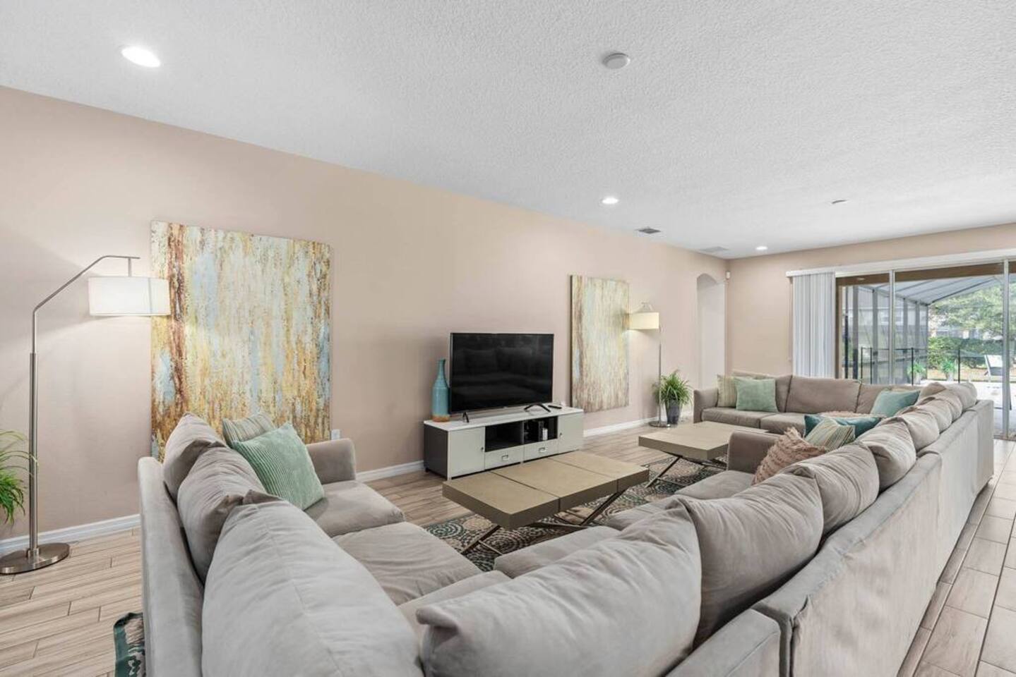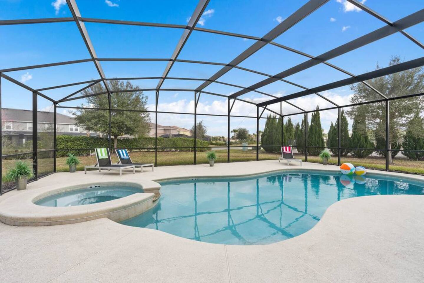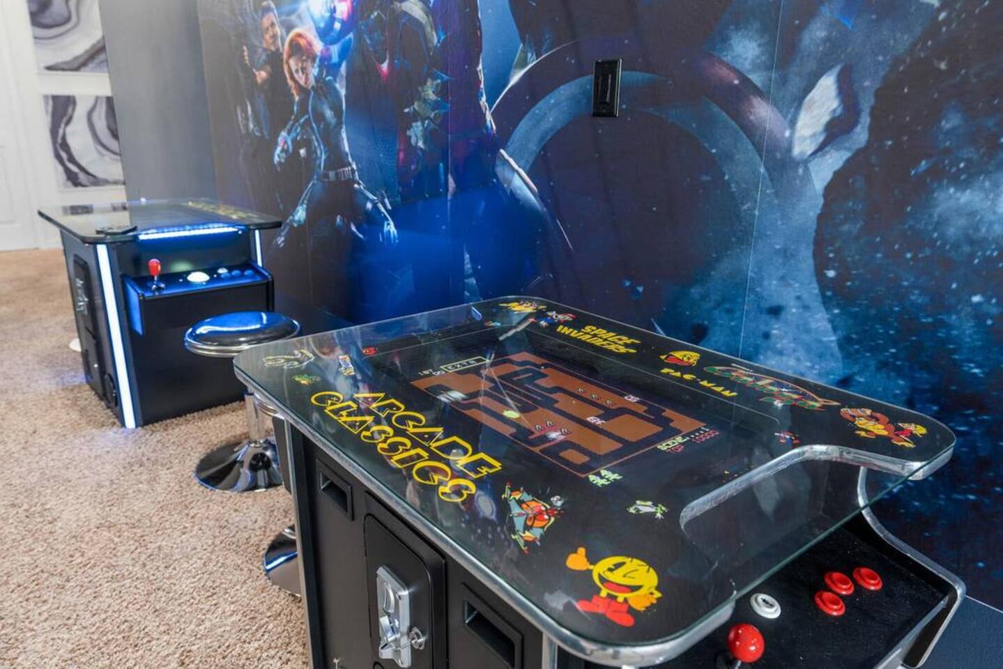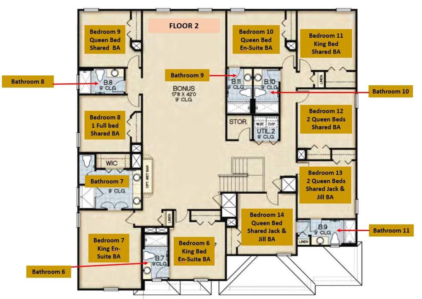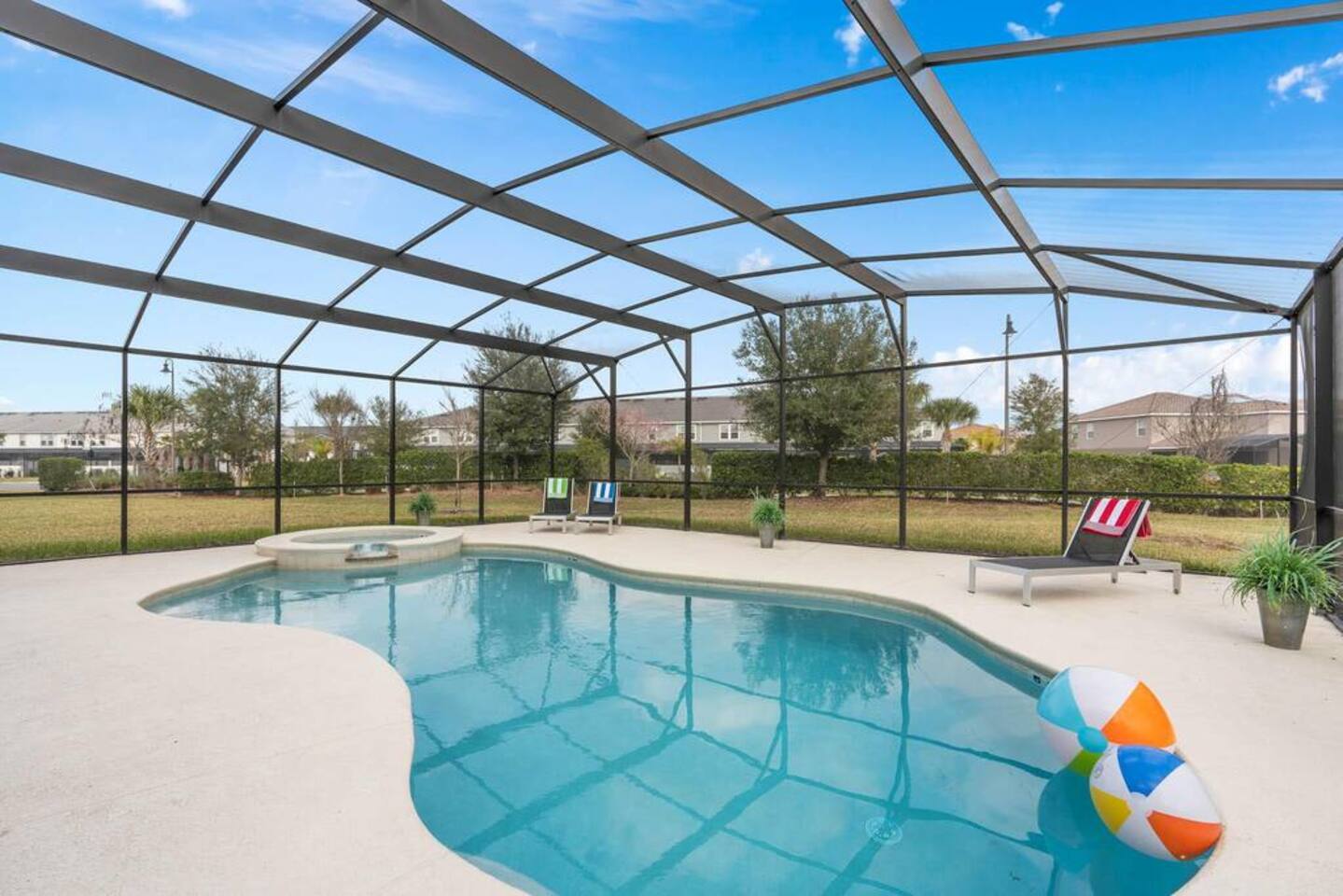 ⭑Bedroom 1 – Floor 1:⭑ ✔ A peaceful queen suite with cozy linens and room-darkening shades ✔ Private en-suite bathroom ⭑Bedroom 2 – Floor 1:⭑ ✔ Elegant King Master Suite with en-suite bathroom ✔ Includes Pack ’n Play crib ⭑Bedroom 3 – Floor 1:⭑ ✔ Second main-floor master with king bed and plush bedding ✔ Private en-suite bathroom and 4K Smart TV ⭑Bedroom 4 – Floor 1:⭑ ✔ Spacious room with two queen beds and private bathroom ✔ Stylish design with plenty of space to unwind ⭑Bedroom 5 – Floor 1:⭑ ✔ Queen bed in a warm and calming retreat ✔ Private en-suite bathroom and welcoming décor ⭑Bedroom 6 – Floor 2:⭑ ✔ King suite with private bathroom and walk-in closet ✔ Ideal for extended stays with extra storage ⭑Bedroom 7 – Floor 2:⭑ ✔ Third Master Suite with king bed and private en-suite ✔ Room-darkening shades for restful nights ⭑Bedroom 8 – Floor 2:⭑ ✔ Full bed with shared Jack & Jill bathroom ✔ Great for solo travelers or teens ⭑Bedroom 9 – Floor 2:⭑ ✔ Queen bed with soft linens and shared bathroom access ✔ Plenty of closet space and natural light ⭑Bedroom 10 – Floor 2:⭑ ✔ Quiet queen room with shared bathroom ✔ Cozy vibe, perfect for unwinding after a busy day ⭑Bedroom 11 – Floor 2:⭑ ✔ Bright and modern king room with shared bathroom ✔ Soft bedding and a homey atmosphere ⭑Bedroom 12 – Floor 2:⭑ ✔ Two queen beds — great for groups or families ✔ Shared bathroom and lots of space to spread out ⭑Bedroom 13 – Floor 2:⭑ ✔ Two queen beds with a group-friendly layout ✔ Comfortable and convenient with shared bathroom ⭑Bedroom 14 – Floor 2:⭑ ✔ Queen bed with private en-suite bathroom ✔ Peaceful, stylish, and perfect for solo time ⭑Living Room:⭑ ✔ Open-concept gathering space with plush seating ✔ 70” HDTV with surround sound for movie nights ⭑Kitchen and Dining Area:⭑ ✔ Chef’s kitchen with stainless steel appliances, two fridges, and two dishwashers ✔ Expansive island for prep and buffet-style meals ✔ Indoor and outdoor dining areas for group feasts ⭑Bathrooms:⭑ ✔ 11 modern bathrooms stocked with hotel-style toiletries and soft towels ✔ Outdoor shower available for post-pool rinses ⭑Outdoor Space:⭑ ✔ Private screened-in pool and spa (heated year-round on request, for small fee) ✔ Outdoor dining set, loungers, and spacious backyard for relaxing or playing ⭑Additional Amenities:⭑ ✔ Avengers-themed game room with arcade games, skee-ball ✔ 70" 4K Smart TV with plush seating and Dolby Soundbar ✔ Two laundry rooms with washers and dryers for added convenience ⭑Safety and Security:⭑ ✔ Equipped with smoke detectors, carbon monoxide detectors, fire extinguisher, and first aid kit ⭑Entertainment and Connectivity:⭑ ✔ High-speed Wi-Fi and Ethernet throughout ✔ Access to Netflix, Disney+, Hulu, Amazon Prime on all Smart TVs ⭑Heating and Cooling:⭑ ✔ Central air conditioning and heating ✔ Ceiling fans and portable fans for custom comfort ⭑Parking and Facilities:⭑ ✔ Free on-site parking and additional street parking ✔ Self-check-in with secure keypad entry ⭑Services:⭑ ✔ Pool and spa heating available (additional fee) ✔ Full access to Solterra Resort amenities: water slides, gym, tennis courts, and more Your stay at this Solterra villa promises group-friendly luxury, exciting entertainment, and all the comforts of home. Book now and make your Central Florida experience unforgettable! ⭑Conclusion⭑ Whether you're hosting a family reunion, vacationing with friends, or planning a special celebration, this villa offers the perfect space to gather, relax, and make magical memories. Reserve your stay today and discover Solterra living at its best!