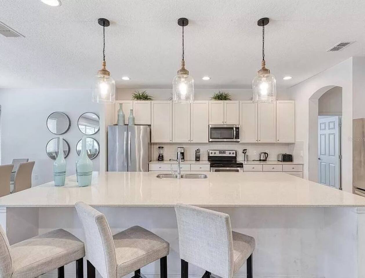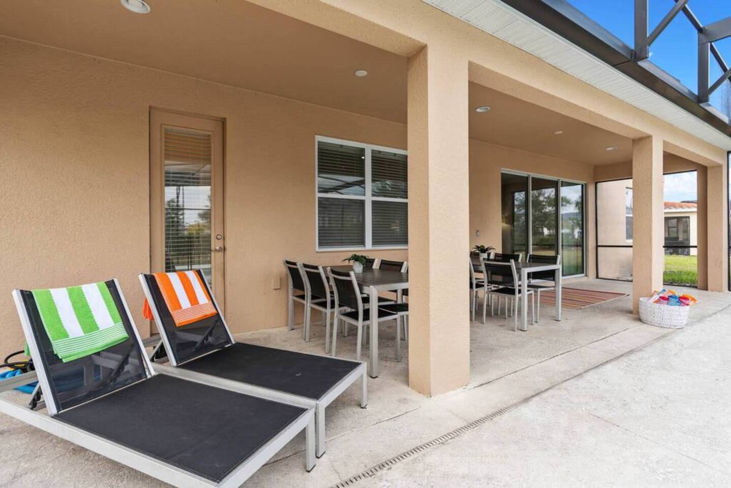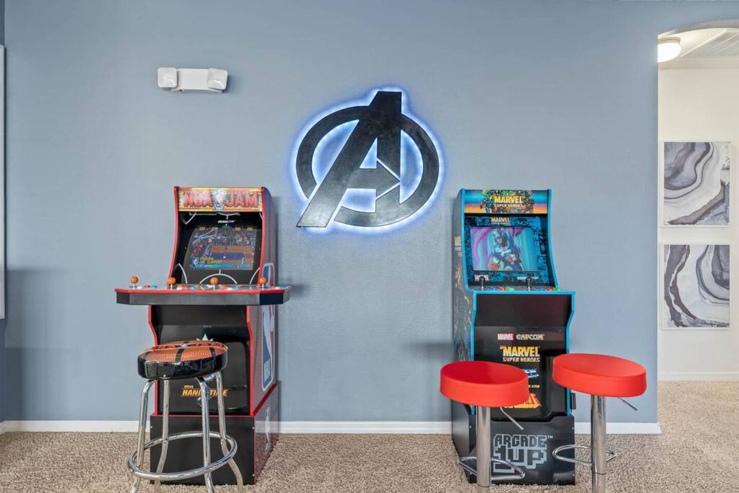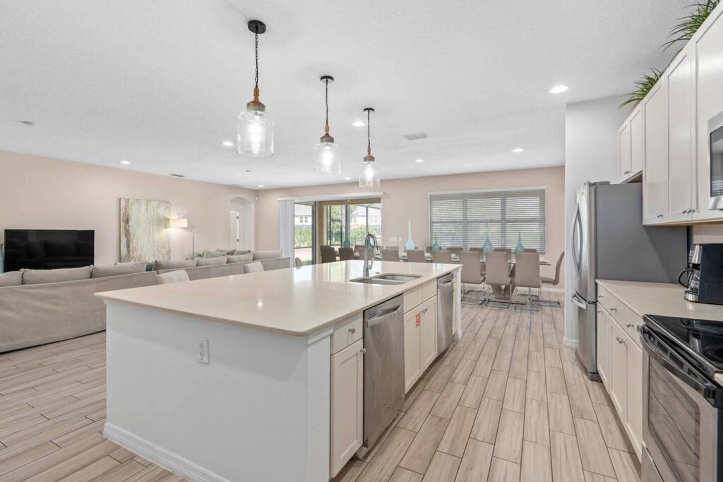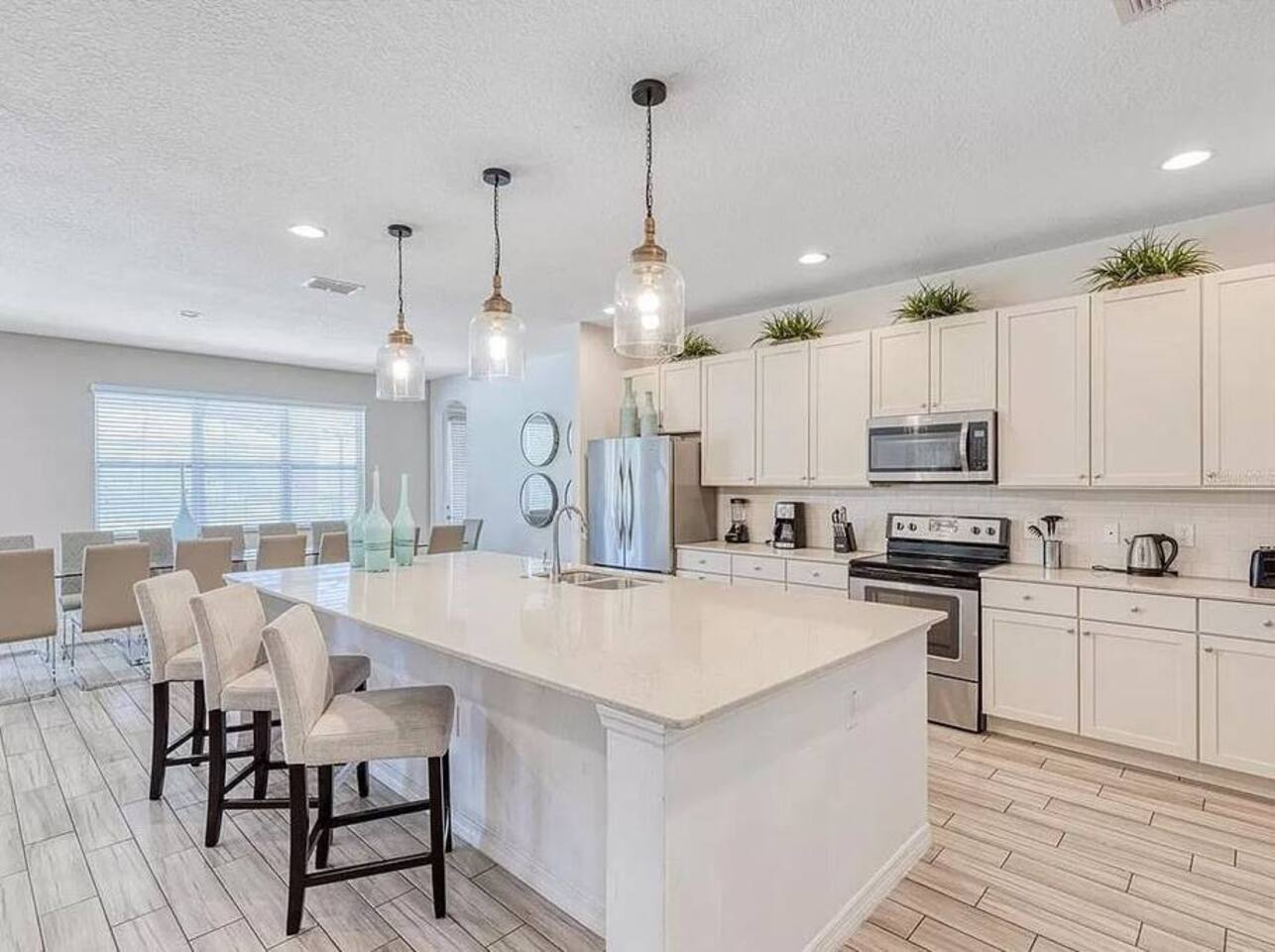 ⭑Bedroom 1 – Floor 1:⭑ ✔ A peaceful queen suite with cozy linens and room-darkening shades ✔ Private en-suite bathroom ⭑Bedroom 2 – Floor 1:⭑ ✔ Elegant King Master Suite with en-suite bathroom ✔ Includes Pack ’n Play crib ⭑Bedroom 3 – Floor 1:⭑ ✔ Second main-floor master with king bed and plush bedding ✔ Private en-suite bathroom and 4K Smart TV ⭑Bedroom 4 – Floor 1:⭑ ✔ Spacious room with two queen beds and private bathroom ✔ Stylish design with plenty of space to unwind ⭑Bedroom 5 – Floor 1:⭑ ✔ Queen bed in a warm and calming retreat ✔ Private en-suite bathroom and welcoming décor ⭑Bedroom 6 – Floor 2:⭑ ✔ King suite with private bathroom and walk-in closet ✔ Ideal for extended stays with extra storage ⭑Bedroom 7 – Floor 2:⭑ ✔ Third Master Suite with king bed and private en-suite ✔ Room-darkening shades for restful nights ⭑Bedroom 8 – Floor 2:⭑ ✔ Full bed with shared Jack & Jill bathroom ✔ Great for solo travelers or teens ⭑Bedroom 9 – Floor 2:⭑ ✔ Queen bed with soft linens and shared bathroom access ✔ Plenty of closet space and natural light ⭑Bedroom 10 – Floor 2:⭑ ✔ Quiet queen room with shared bathroom ✔ Cozy vibe, perfect for unwinding after a busy day ⭑Bedroom 11 – Floor 2:⭑ ✔ Bright and modern king room with shared bathroom ✔ Soft bedding and a homey atmosphere ⭑Bedroom 12 – Floor 2:⭑ ✔ Two queen beds — great for groups or families ✔ Shared bathroom and lots of space to spread out ⭑Bedroom 13 – Floor 2:⭑ ✔ Two queen beds with a group-friendly layout ✔ Comfortable and convenient with shared bathroom ⭑Bedroom 14 – Floor 2:⭑ ✔ Queen bed with private en-suite bathroom ✔ Peaceful, stylish, and perfect for solo time ⭑Living Room:⭑ ✔ Open-concept gathering space with plush seating ✔ 70” HDTV with surround sound for movie nights ⭑Kitchen and Dining Area:⭑ ✔ Chef’s kitchen with stainless steel appliances, two fridges, and two dishwashers ✔ Expansive island for prep and buffet-style meals ✔ Indoor and outdoor dining areas for group feasts ⭑Bathrooms:⭑ ✔ 11 modern bathrooms stocked with hotel-style toiletries and soft towels ✔ Outdoor shower available for post-pool rinses ⭑Outdoor Space:⭑ ✔ Private screened-in pool and spa (heated year-round on request, for small fee) ✔ Outdoor dining set, loungers, and spacious backyard for relaxing or playing ⭑Additional Amenities:⭑ ✔ Avengers-themed game room with arcade games, skee-ball ✔ 70" 4K Smart TV with plush seating and Dolby Soundbar ✔ Two laundry rooms with washers and dryers for added convenience ⭑Safety and Security:⭑ ✔ Equipped with smoke detectors, carbon monoxide detectors, fire extinguisher, and first aid kit ⭑Entertainment and Connectivity:⭑ ✔ High-speed Wi-Fi and Ethernet throughout ✔ Access to Netflix, Disney+, Hulu, Amazon Prime on all Smart TVs ⭑Heating and Cooling:⭑ ✔ Central air conditioning and heating ✔ Ceiling fans and portable fans for custom comfort ⭑Parking and Facilities:⭑ ✔ Free on-site parking and additional street parking ✔ Self-check-in with secure keypad entry ⭑Services:⭑ ✔ Pool and spa heating available (additional fee) ✔ Full access to Solterra Resort amenities: water slides, gym, tennis courts, and more Your stay at this Solterra villa promises group-friendly luxury, exciting entertainment, and all the comforts of home. Book now and make your Central Florida experience unforgettable! ⭑Conclusion⭑ Whether you're hosting a family reunion, vacationing with friends, or planning a special celebration, this villa offers the perfect space to gather, relax, and make magical memories. Reserve your stay today and discover Solterra living at its best!