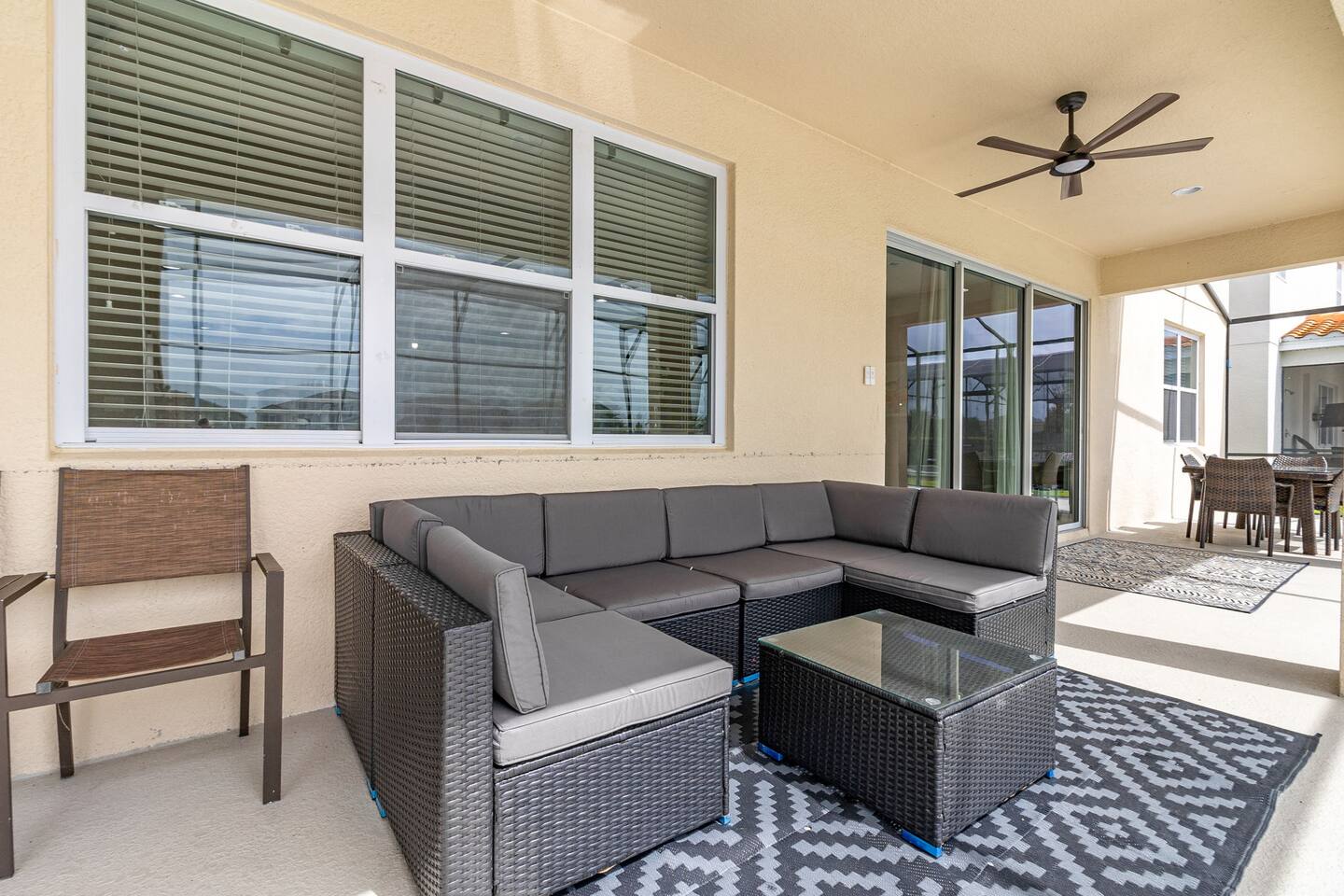 **Special Rates:** We offer discounted rates throughout the year. Please contact us for information about our current seasonal discounts and promotions! **Multiple Properties:** This villa is one of four homes we own on the same street, perfect for large groups requiring multiple accommodations. Two of our homes are next to each other, while the other two are just four doors down. **Check-in/Check-out:** Check-in is at 4 PM, and check-out is at 10 AM. We offer luggage drop-off for your convenience in case of early arrival or late departure. **Parking:** Enjoy free parking on the premises and additional free street parking, providing convenience for all your guests. **Long-Term Stays:** We welcome long-term stays, allowing you to enjoy our villa and the surrounding attractions for 28 days or more. **Child-Friendly Amenities:** Our villa is equipped with family-friendly amenities, including cribs, high chairs, children’s dinnerware, and baby safety gates. We also have an indoor children's playroom and an outdoor playground. **Resort Access:** As our guests, you have full access to the resort's facilities, including the gym, communal pool, and additional recreation areas. **No Exterior Cameras:** For your privacy, there are no exterior security cameras on the property. We are dedicated to providing you with a comfortable and enjoyable stay. Please feel free to reach out if you have any questions or need further assistance.
