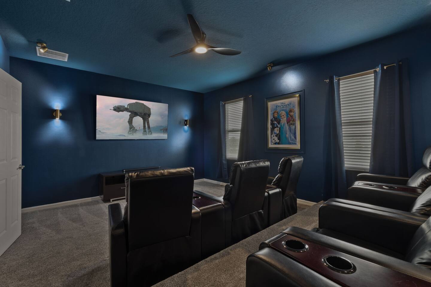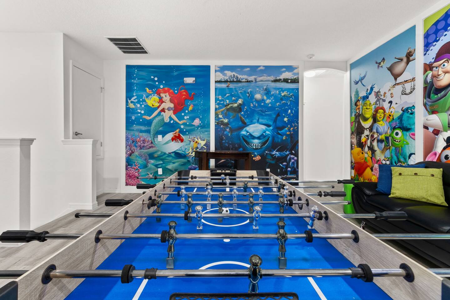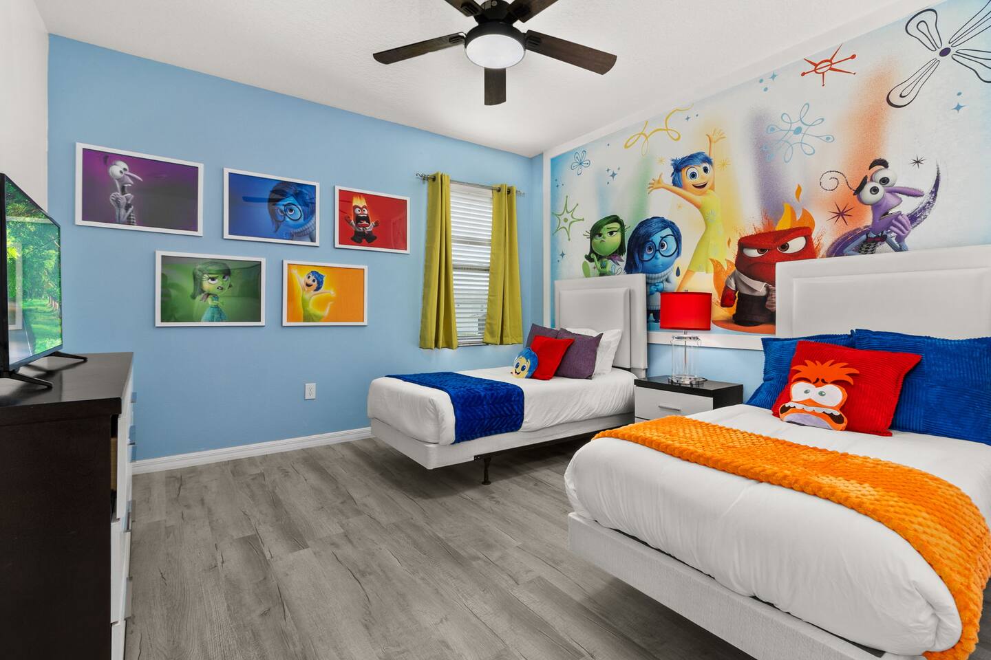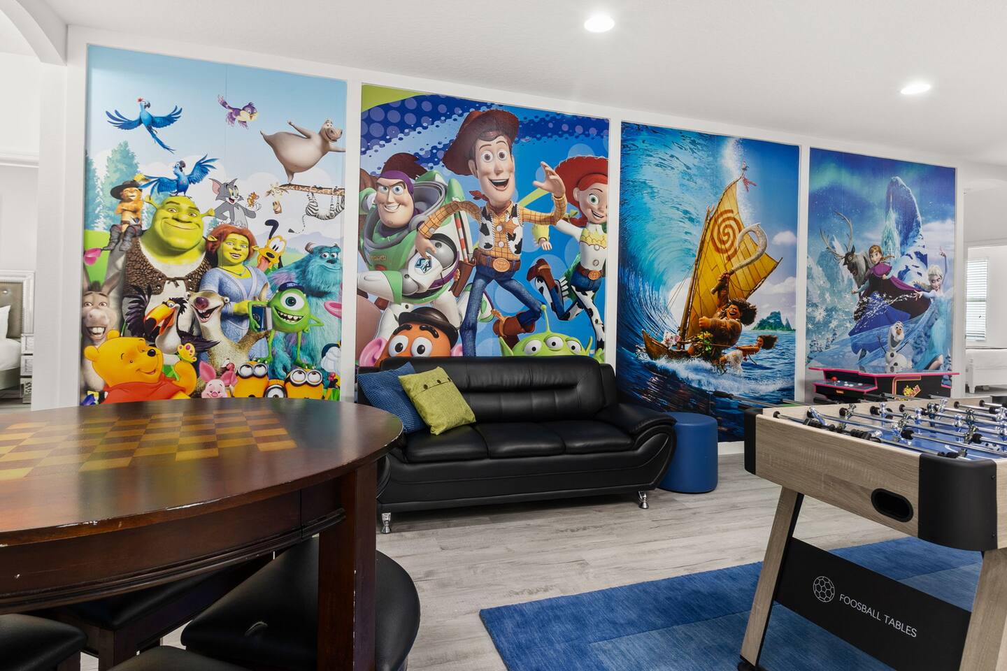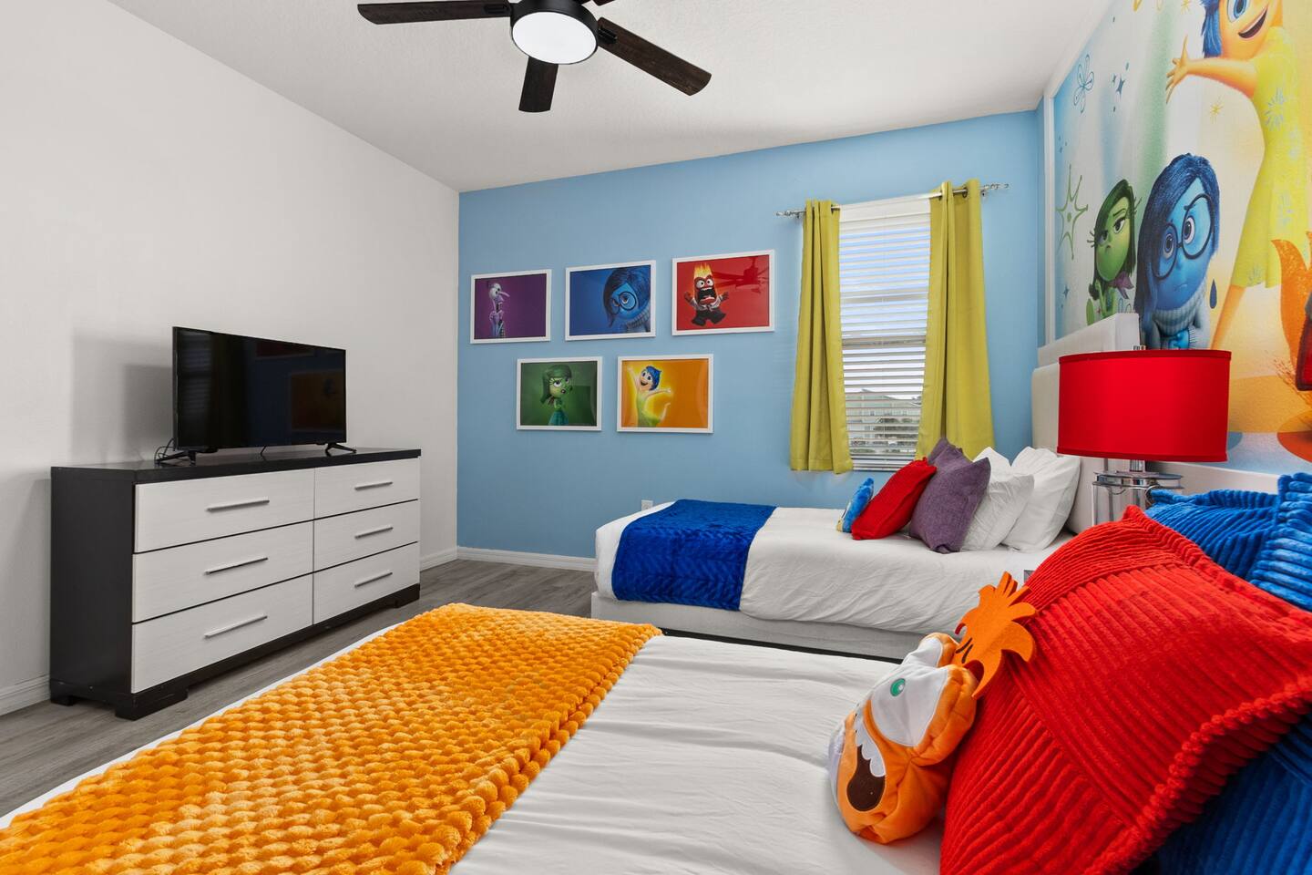 ⭑Master Bedroom:⭑ ✔ Spacious king bed with plush bedding for restful sleep ✔ En-suite spa-style bathroom with soaking tub and walk-in shower ✔ 4K Smart TV, walk-in closet, and room-darkening shades for total comfort ⭑Second Bedroom:⭑ ✔ King bed with high-quality linens and a cozy reading nook ✔ Private en-suite bathroom and Pack 'n Play crib ⭑Third Bedroom:⭑ ✔ Elegant king bed, mosquito net, and generous wardrobe ✔ En-suite with dual sinks and luxurious rainfall shower ⭑Fourth Bedroom:⭑ ✔ King bed with soothing décor and a stylish headboard ✔ Private bathroom with rainfall shower and premium toiletries ⭑Fifth Bedroom:⭑ ✔ King bed with extra pillows and a dedicated writing desk ✔ Sleek en-suite bathroom with a spacious walk-in shower ⭑Sixth Bedroom:⭑ ✔ Second-floor king suite with cozy reading nook and 4K Smart TV ✔ En-suite bathroom with walk-in shower and extra blankets ⭑Seventh Bedroom:⭑ ✔ Vibrant décor with king bed and room-darkening shades ✔ En-suite bathroom featuring a soaking tub and walk-in shower ⭑Eighth Bedroom:⭑ ✔ Twin + full bed combo in a bright, kid-friendly space ✔ Jack and Jill bathroom with bathtub and dual sinks ⭑Ninth Bedroom:⭑ ✔ Two cheerful twin beds and bedside reading lamps ✔ Shares Jack and Jill bathroom—perfect for younger guests ⭑Tenth Bedroom:⭑ ✔ King bed, 4K Smart TV, and dedicated workspace ✔ Shares Jack and Jill bathroom for added convenience ⭑Eleventh Bedroom:⭑ ✔ King bed with cozy reading corner ✔ Shared Jack and Jill bathroom with modern fixtures ⭑Twelfth Bedroom:⭑ ✔ Full-over-full bunk beds in a playful, themed space ✔ Adjacent bathroom with all essentials and kid-friendly design ⭑Thirteenth Bedroom:⭑ ✔ Two twin beds with bright, welcoming decor ✔ Access to shared bathroom with dual sinks ⭑Fourteenth Bedroom:⭑ ✔ Plush king bed with 4K Smart TV and extra closet space ✔ Private en-suite bathroom with modern walk-in shower ⭑Living Room:⭑ ✔ Bright and open space with comfy seating and stylish design ✔ 70” 4K Smart TV, natural light, and easy flow to kitchen and pool ⭑Kitchen and Dining Area:⭑ ✔ Chef’s dream kitchen with double fridges, ovens, and dishwashers ✔ Large island for meal prep and group gatherings ✔ Indoor and outdoor dining tables for memorable meals ⭑Bathrooms:⭑ ✔ 11 stylish bathrooms with shampoo, conditioner, shower gel & more ✔ Hair dryers, fluffy towels, and ample storage throughout ⭑Outdoor Space:⭑ ✔ Private screened-in pool and spa for relaxing any time of day ✔ Lounge chairs, patio dining, and a beautifully landscaped backyard ✔ Access to outdoor resort amenities like playgrounds and fitness center ⭑Additional Amenities:⭑ ✔ Two full laundry rooms with washers and dryers ✔ Baby gear including crib, Pack 'n Play, high chair ✔ Themed kids' rooms, Game Room ⭑Safety and Security:⭑ ✔ Smoke and carbon monoxide detectors ✔ Fire extinguisher and first aid kit included ⭑Entertainment and Connectivity:⭑ ✔ High-speed Wi-Fi and Ethernet ✔ Smart TVs in every room, sound system, game console, and movie theater ✔ Full game room with arcade games and Nintendo Switch ⭑Heating and Cooling:⭑ ✔ Central air conditioning and heating ✔ Ceiling fans and portable fans for personalized comfort ⭑Parking and Facilities:⭑ ✔ Free on-site parking and street parking ✔ Full access to Solterra Resort amenities: gym, pool, clubhouse & more ⭑Services:⭑ ✔ Easy self-check-in with keypad ✔ Luggage drop-off for early or late arrivals ✔ Long-term stays welcome—perfect for work retreats or extended vacations Your stay at Themed Vacation Villa promises luxurious comfort, unforgettable fun, and magical moments for guests of all ages. Book now and elevate your Solterra Resort experience in style! ⭑Conclusion⭑ From the private pool and full-sized game room to the in-home movie theater and spacious dining areas, this villa has everything you need for an unforgettable group getaway. Whether you're planning a family reunion, team retreat, or friends’ escape—reserve your stay today and start your dream vacation!