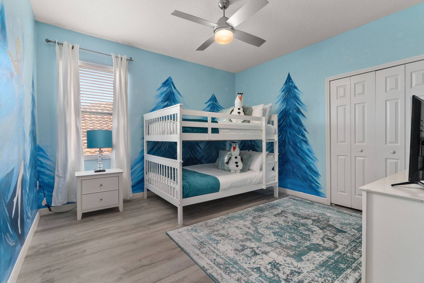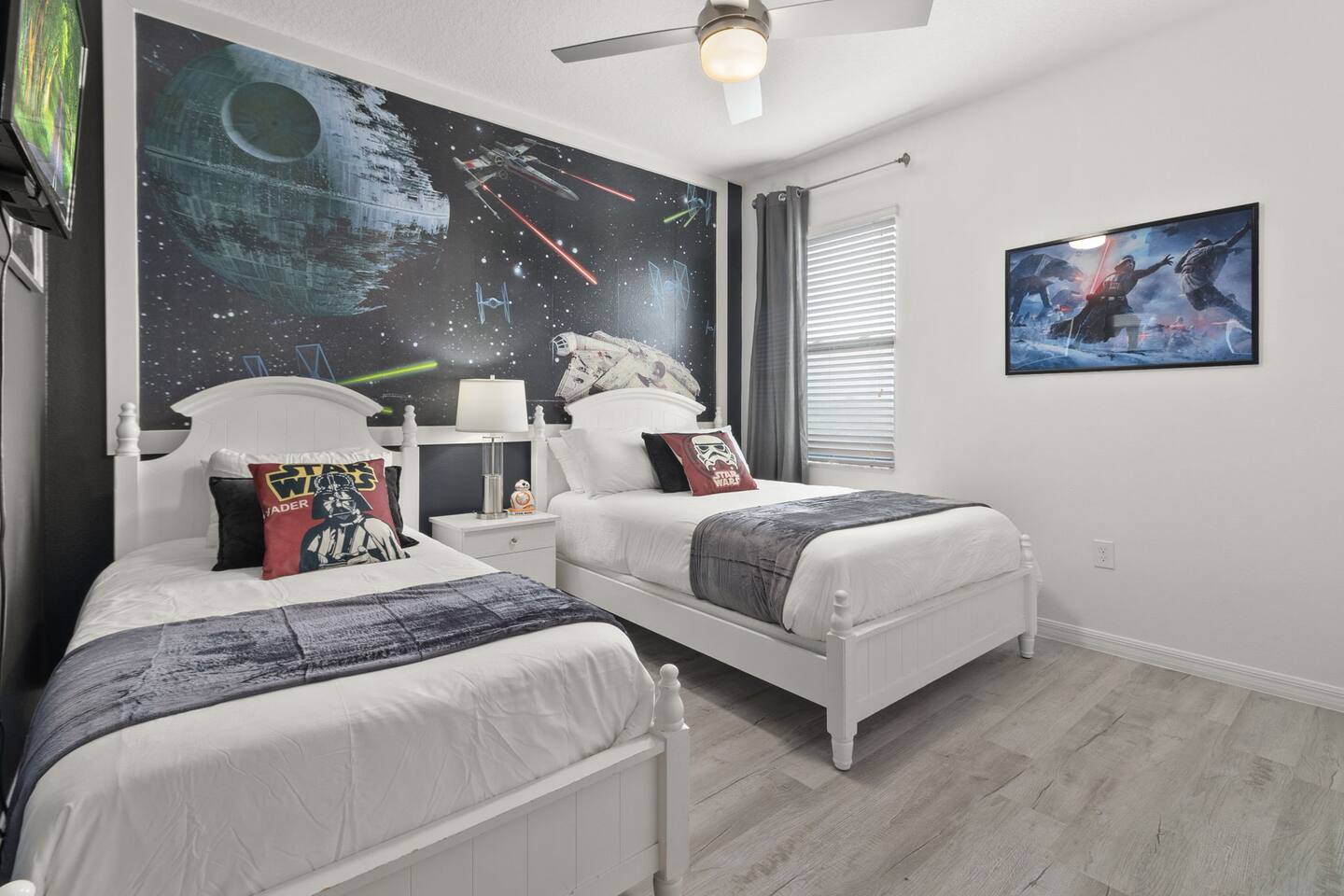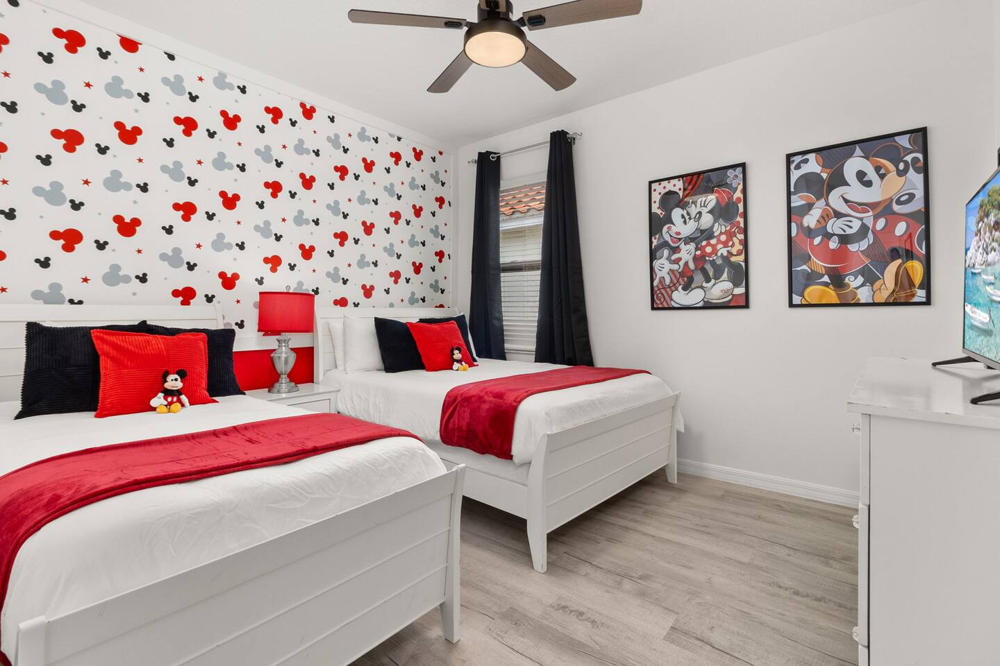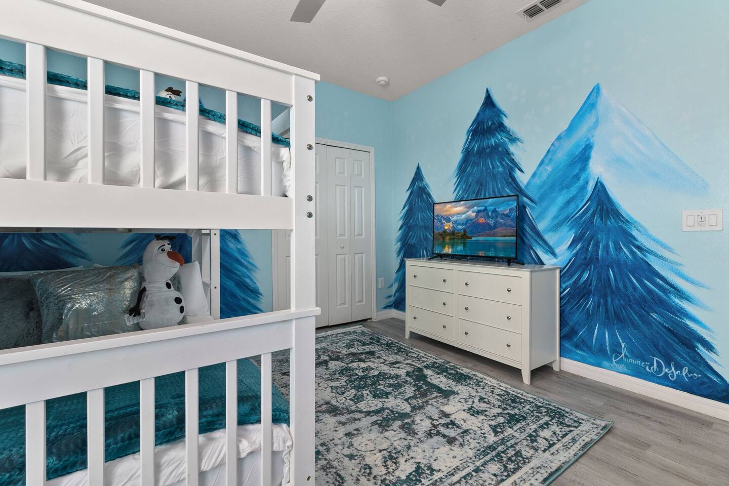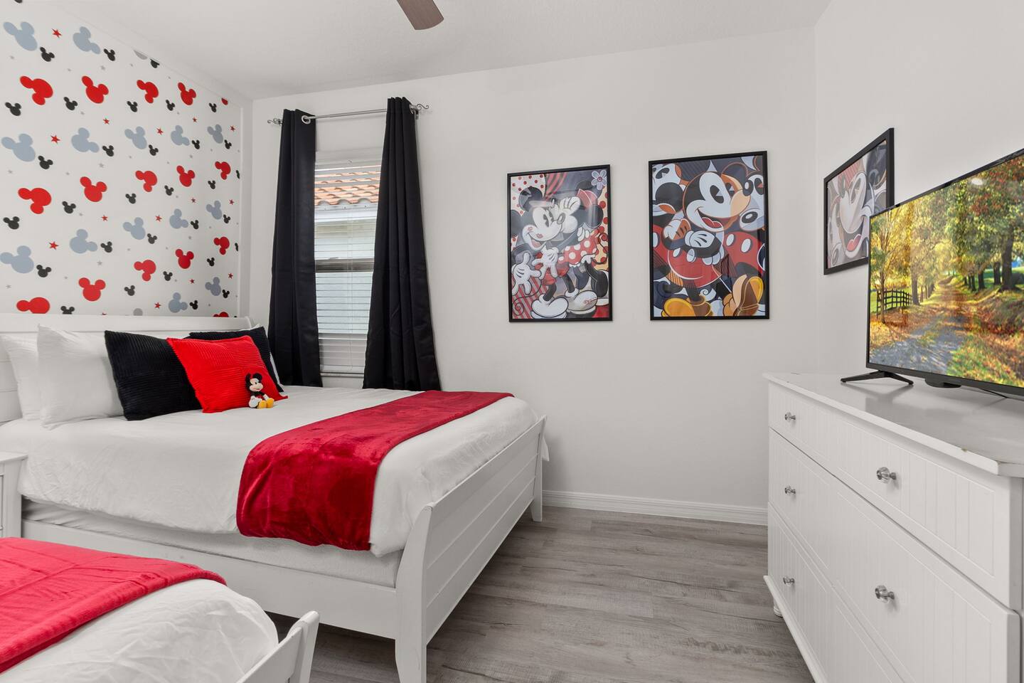 ⭑Master Bedroom:⭑ ✔ Spacious king bed with plush bedding for restful sleep ✔ En-suite spa-style bathroom with soaking tub and walk-in shower ✔ 4K Smart TV, walk-in closet, and room-darkening shades for total comfort ⭑Second Bedroom:⭑ ✔ King bed with high-quality linens and a cozy reading nook ✔ Private en-suite bathroom and Pack 'n Play crib ⭑Third Bedroom:⭑ ✔ Elegant king bed, mosquito net, and generous wardrobe ✔ En-suite with dual sinks and luxurious rainfall shower ⭑Fourth Bedroom:⭑ ✔ King bed with soothing décor and a stylish headboard ✔ Private bathroom with rainfall shower and premium toiletries ⭑Fifth Bedroom:⭑ ✔ King bed with extra pillows and a dedicated writing desk ✔ Sleek en-suite bathroom with a spacious walk-in shower ⭑Sixth Bedroom:⭑ ✔ Second-floor king suite with cozy reading nook and 4K Smart TV ✔ En-suite bathroom with walk-in shower and extra blankets ⭑Seventh Bedroom:⭑ ✔ Vibrant décor with king bed and room-darkening shades ✔ En-suite bathroom featuring a soaking tub and walk-in shower ⭑Eighth Bedroom:⭑ ✔ Twin + full bed combo in a bright, kid-friendly space ✔ Jack and Jill bathroom with bathtub and dual sinks ⭑Ninth Bedroom:⭑ ✔ Two cheerful twin beds and bedside reading lamps ✔ Shares Jack and Jill bathroom—perfect for younger guests ⭑Tenth Bedroom:⭑ ✔ King bed, 4K Smart TV, and dedicated workspace ✔ Shares Jack and Jill bathroom for added convenience ⭑Eleventh Bedroom:⭑ ✔ King bed with cozy reading corner ✔ Shared Jack and Jill bathroom with modern fixtures ⭑Twelfth Bedroom:⭑ ✔ Full-over-full bunk beds in a playful, themed space ✔ Adjacent bathroom with all essentials and kid-friendly design ⭑Thirteenth Bedroom:⭑ ✔ Two twin beds with bright, welcoming decor ✔ Access to shared bathroom with dual sinks ⭑Fourteenth Bedroom:⭑ ✔ Plush king bed with 4K Smart TV and extra closet space ✔ Private en-suite bathroom with modern walk-in shower ⭑Living Room:⭑ ✔ Bright and open space with comfy seating and stylish design ✔ 70” 4K Smart TV, natural light, and easy flow to kitchen and pool ⭑Kitchen and Dining Area:⭑ ✔ Chef’s dream kitchen with double fridges, ovens, and dishwashers ✔ Large island for meal prep and group gatherings ✔ Indoor and outdoor dining tables for memorable meals ⭑Bathrooms:⭑ ✔ 11 stylish bathrooms with shampoo, conditioner, shower gel & more ✔ Hair dryers, fluffy towels, and ample storage throughout ⭑Outdoor Space:⭑ ✔ Private screened-in pool and spa for relaxing any time of day ✔ Lounge chairs, patio dining, and a beautifully landscaped backyard ✔ Access to outdoor resort amenities like playgrounds and fitness center ⭑Additional Amenities:⭑ ✔ Two full laundry rooms with washers and dryers ✔ Baby gear including crib, Pack 'n Play, high chair ✔ Themed kids' rooms, Game Room ⭑Safety and Security:⭑ ✔ Smoke and carbon monoxide detectors ✔ Fire extinguisher and first aid kit included ⭑Entertainment and Connectivity:⭑ ✔ High-speed Wi-Fi and Ethernet ✔ Smart TVs in every room, sound system, game console, and movie theater ✔ Full game room with arcade games and Nintendo Switch ⭑Heating and Cooling:⭑ ✔ Central air conditioning and heating ✔ Ceiling fans and portable fans for personalized comfort ⭑Parking and Facilities:⭑ ✔ Free on-site parking and street parking ✔ Full access to Solterra Resort amenities: gym, pool, clubhouse & more ⭑Services:⭑ ✔ Easy self-check-in with keypad ✔ Luggage drop-off for early or late arrivals ✔ Long-term stays welcome—perfect for work retreats or extended vacations Your stay at Themed Vacation Villa promises luxurious comfort, unforgettable fun, and magical moments for guests of all ages. Book now and elevate your Solterra Resort experience in style! ⭑Conclusion⭑ From the private pool and full-sized game room to the in-home movie theater and spacious dining areas, this villa has everything you need for an unforgettable group getaway. Whether you're planning a family reunion, team retreat, or friends’ escape—reserve your stay today and start your dream vacation!