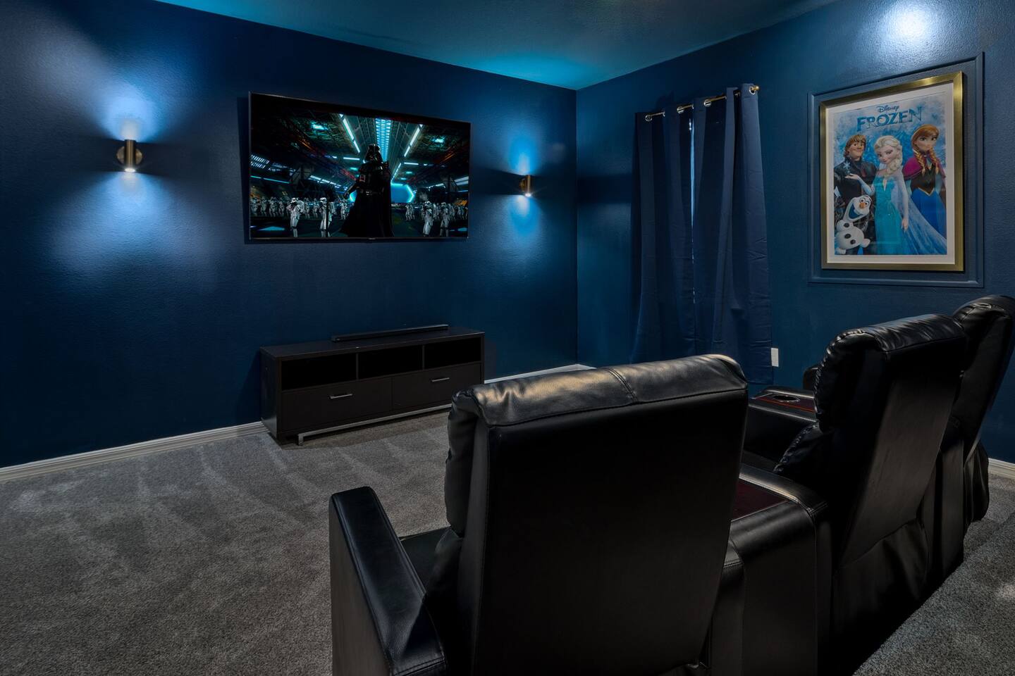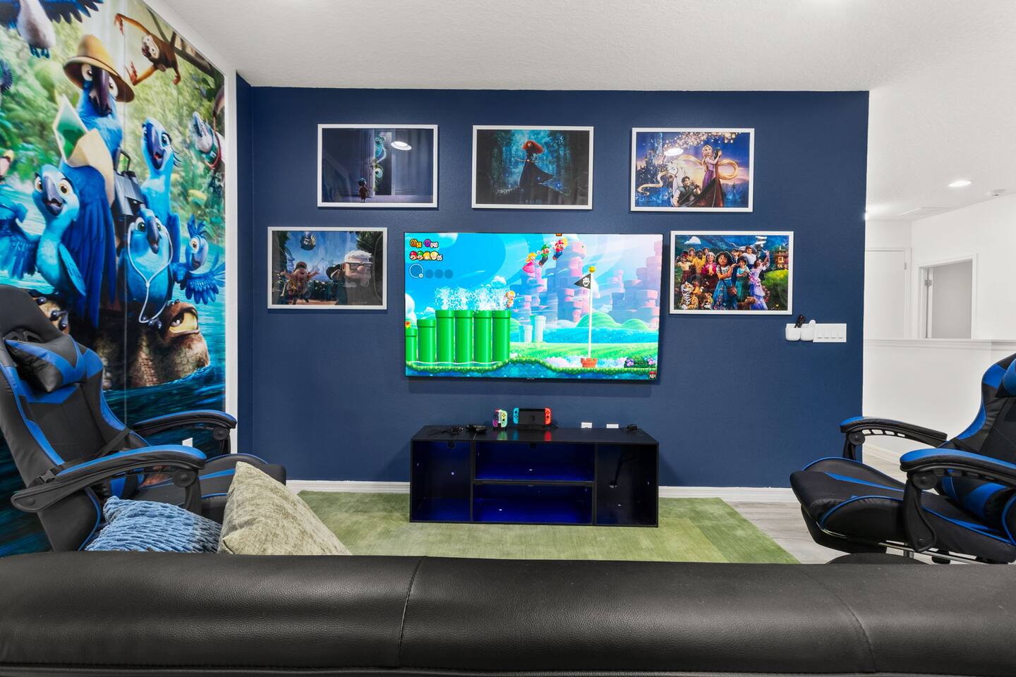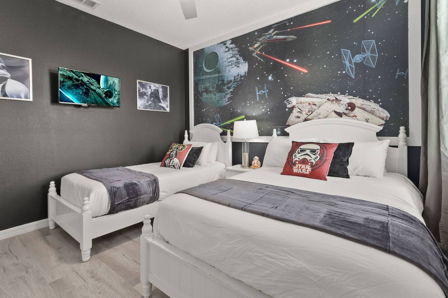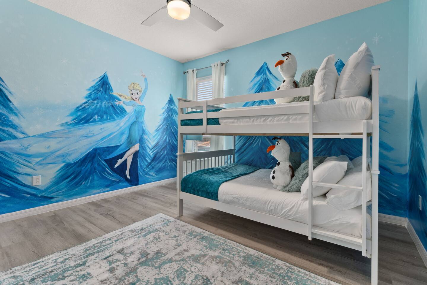 ⭑Master Bedroom:⭑ ✔ Spacious king bed with plush bedding for restful sleep ✔ En-suite spa-style bathroom with soaking tub and walk-in shower ✔ 4K Smart TV, walk-in closet, and room-darkening shades for total comfort ⭑Second Bedroom:⭑ ✔ King bed with high-quality linens and a cozy reading nook ✔ Private en-suite bathroom and Pack 'n Play crib ⭑Third Bedroom:⭑ ✔ Elegant king bed, mosquito net, and generous wardrobe ✔ En-suite with dual sinks and luxurious rainfall shower ⭑Fourth Bedroom:⭑ ✔ King bed with soothing décor and a stylish headboard ✔ Private bathroom with rainfall shower and premium toiletries ⭑Fifth Bedroom:⭑ ✔ King bed with extra pillows and a dedicated writing desk ✔ Sleek en-suite bathroom with a spacious walk-in shower ⭑Sixth Bedroom:⭑ ✔ Second-floor king suite with cozy reading nook and 4K Smart TV ✔ En-suite bathroom with walk-in shower and extra blankets ⭑Seventh Bedroom:⭑ ✔ Vibrant décor with king bed and room-darkening shades ✔ En-suite bathroom featuring a soaking tub and walk-in shower ⭑Eighth Bedroom:⭑ ✔ Twin + full bed combo in a bright, kid-friendly space ✔ Jack and Jill bathroom with bathtub and dual sinks ⭑Ninth Bedroom:⭑ ✔ Two cheerful twin beds and bedside reading lamps ✔ Shares Jack and Jill bathroom—perfect for younger guests ⭑Tenth Bedroom:⭑ ✔ King bed, 4K Smart TV, and dedicated workspace ✔ Shares Jack and Jill bathroom for added convenience ⭑Eleventh Bedroom:⭑ ✔ King bed with cozy reading corner ✔ Shared Jack and Jill bathroom with modern fixtures ⭑Twelfth Bedroom:⭑ ✔ Full-over-full bunk beds in a playful, themed space ✔ Adjacent bathroom with all essentials and kid-friendly design ⭑Thirteenth Bedroom:⭑ ✔ Two twin beds with bright, welcoming decor ✔ Access to shared bathroom with dual sinks ⭑Fourteenth Bedroom:⭑ ✔ Plush king bed with 4K Smart TV and extra closet space ✔ Private en-suite bathroom with modern walk-in shower ⭑Living Room:⭑ ✔ Bright and open space with comfy seating and stylish design ✔ 70” 4K Smart TV, natural light, and easy flow to kitchen and pool ⭑Kitchen and Dining Area:⭑ ✔ Chef’s dream kitchen with double fridges, ovens, and dishwashers ✔ Large island for meal prep and group gatherings ✔ Indoor and outdoor dining tables for memorable meals ⭑Bathrooms:⭑ ✔ 11 stylish bathrooms with shampoo, conditioner, shower gel & more ✔ Hair dryers, fluffy towels, and ample storage throughout ⭑Outdoor Space:⭑ ✔ Private screened-in pool and spa for relaxing any time of day ✔ Lounge chairs, patio dining, and a beautifully landscaped backyard ✔ Access to outdoor resort amenities like playgrounds and fitness center ⭑Additional Amenities:⭑ ✔ Two full laundry rooms with washers and dryers ✔ Baby gear including crib, Pack 'n Play, high chair ✔ Themed kids' rooms, Game Room ⭑Safety and Security:⭑ ✔ Smoke and carbon monoxide detectors ✔ Fire extinguisher and first aid kit included ⭑Entertainment and Connectivity:⭑ ✔ High-speed Wi-Fi and Ethernet ✔ Smart TVs in every room, sound system, game console, and movie theater ✔ Full game room with arcade games and Nintendo Switch ⭑Heating and Cooling:⭑ ✔ Central air conditioning and heating ✔ Ceiling fans and portable fans for personalized comfort ⭑Parking and Facilities:⭑ ✔ Free on-site parking and street parking ✔ Full access to Solterra Resort amenities: gym, pool, clubhouse & more ⭑Services:⭑ ✔ Easy self-check-in with keypad ✔ Luggage drop-off for early or late arrivals ✔ Long-term stays welcome—perfect for work retreats or extended vacations Your stay at Themed Vacation Villa promises luxurious comfort, unforgettable fun, and magical moments for guests of all ages. Book now and elevate your Solterra Resort experience in style! ⭑Conclusion⭑ From the private pool and full-sized game room to the in-home movie theater and spacious dining areas, this villa has everything you need for an unforgettable group getaway. Whether you're planning a family reunion, team retreat, or friends’ escape—reserve your stay today and start your dream vacation!