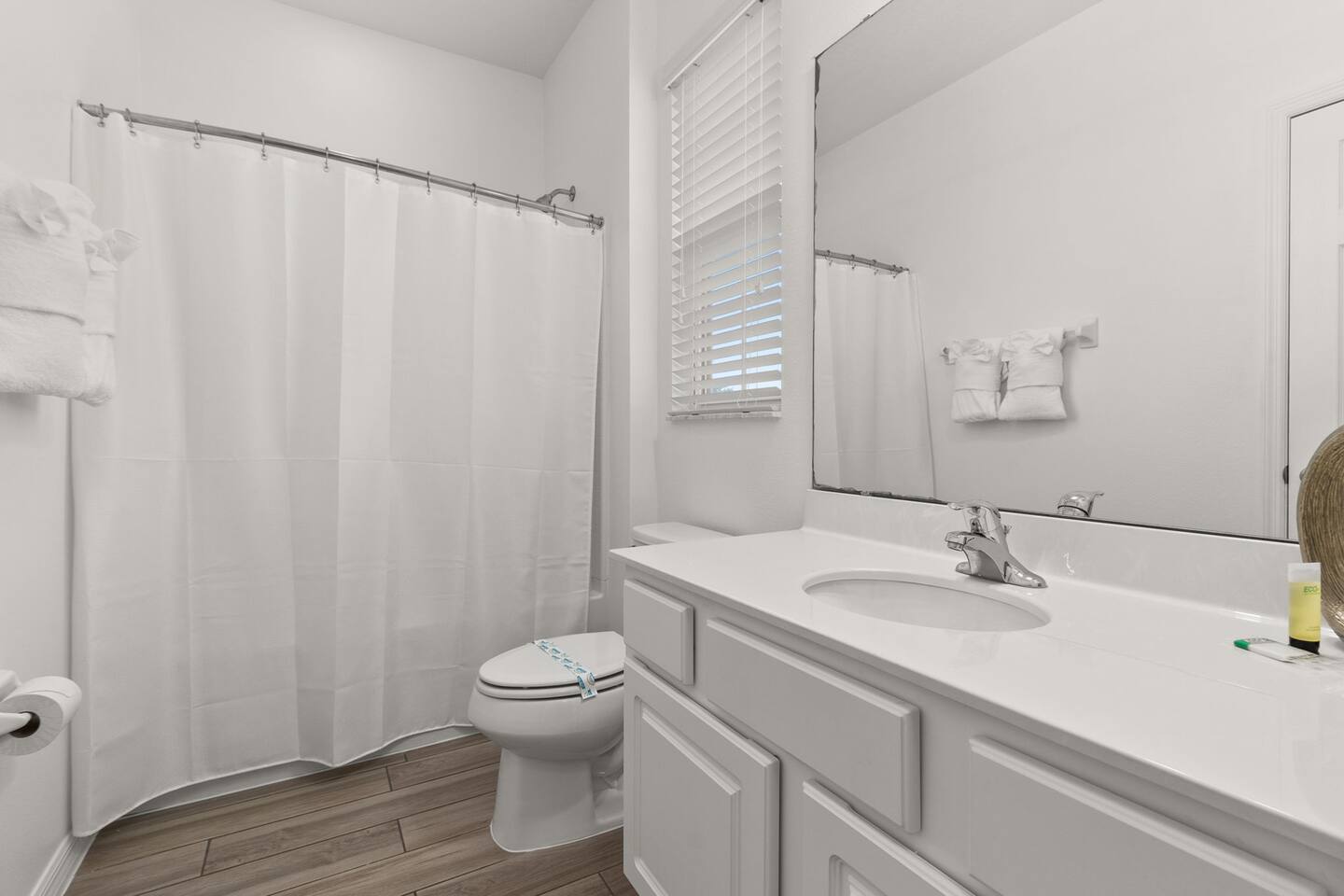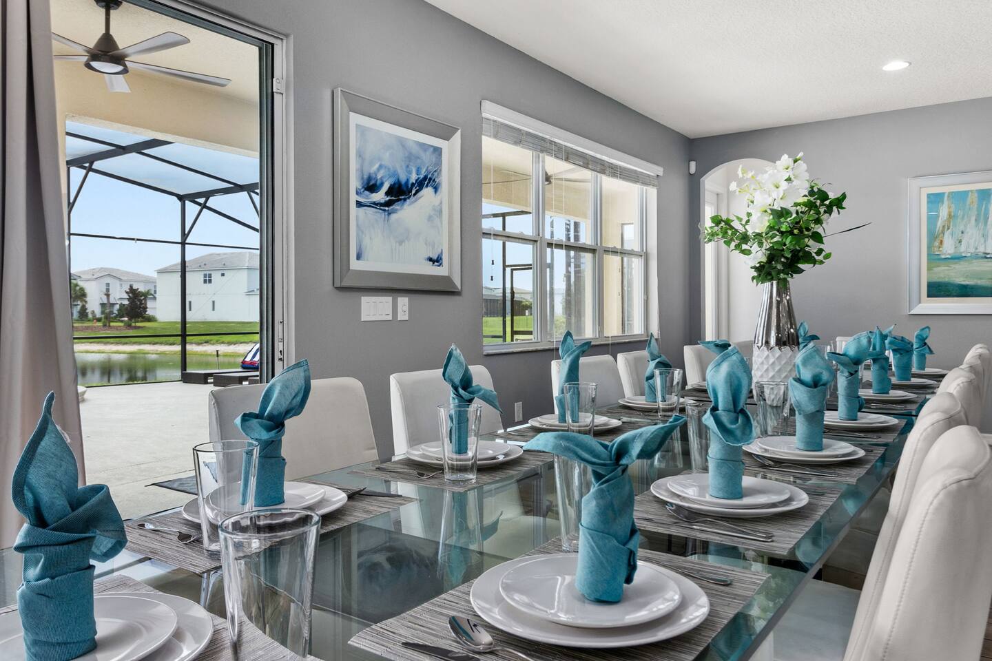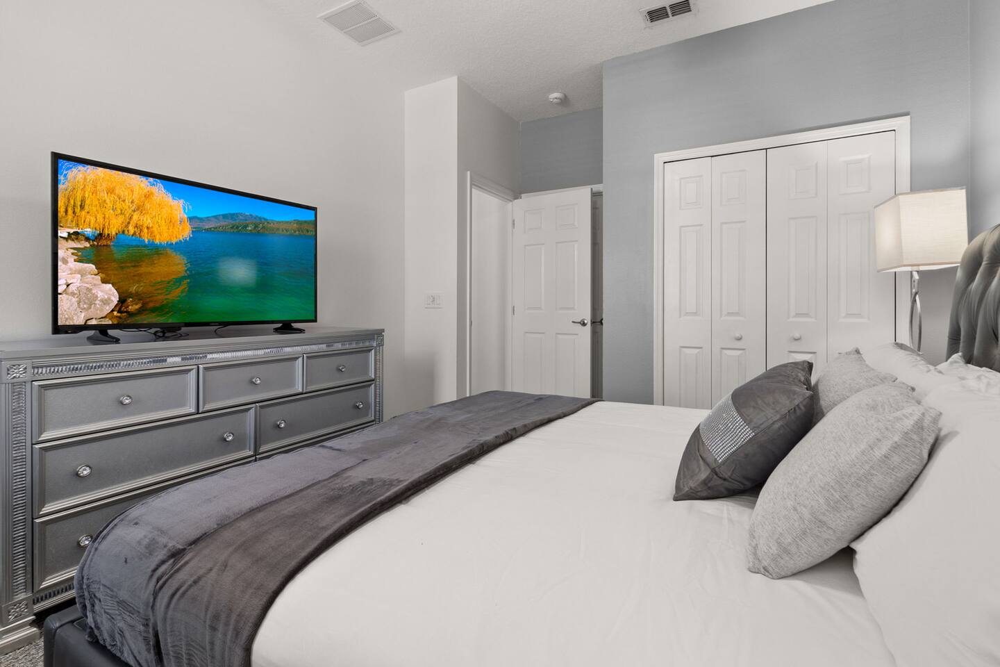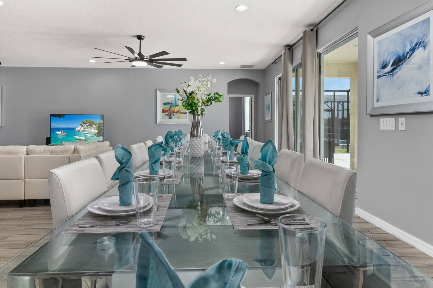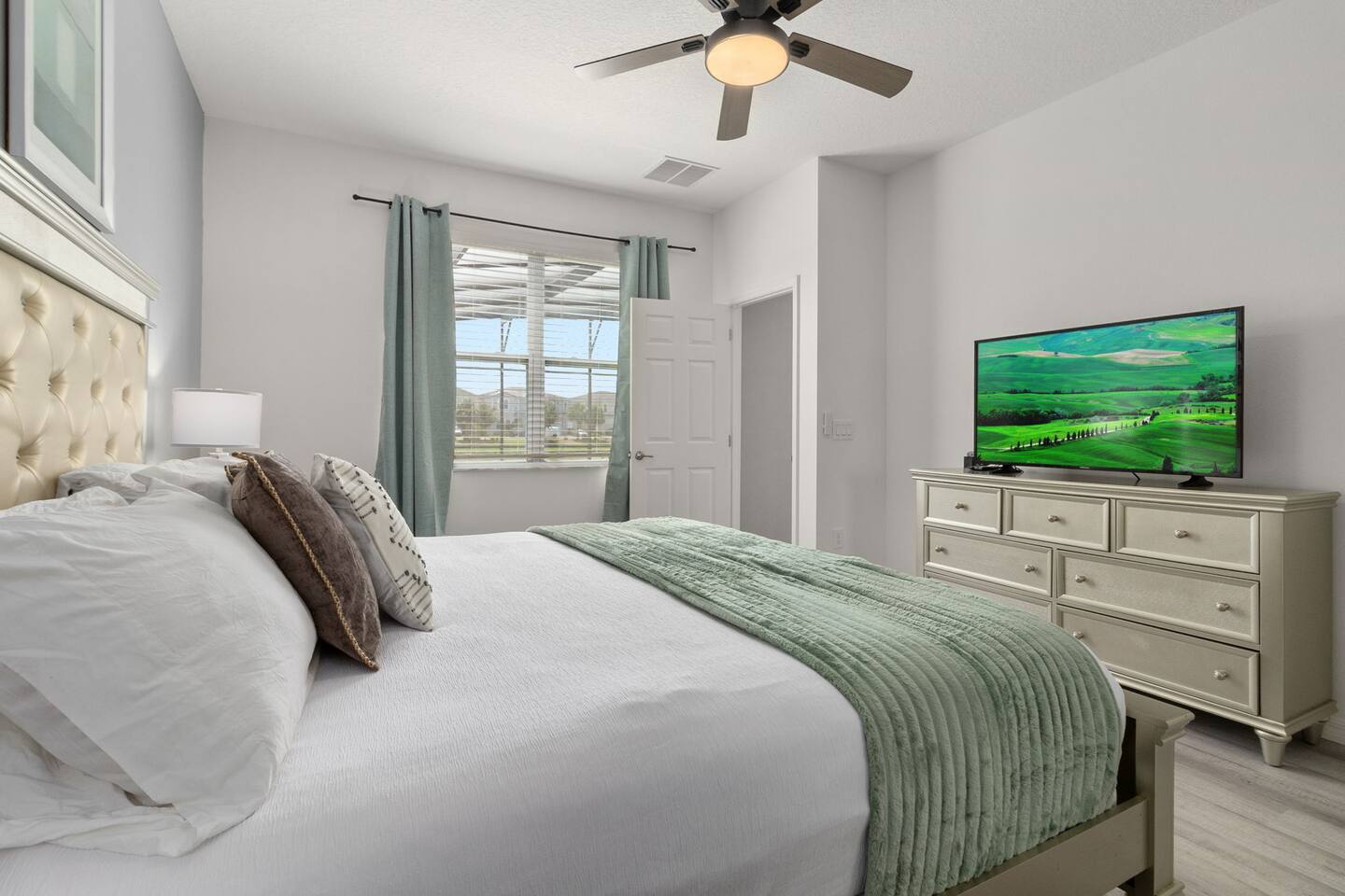 ⭑Master Bedroom:⭑ ✔ Spacious king bed with plush bedding for restful sleep ✔ En-suite spa-style bathroom with soaking tub and walk-in shower ✔ 4K Smart TV, walk-in closet, and room-darkening shades for total comfort ⭑Second Bedroom:⭑ ✔ King bed with high-quality linens and a cozy reading nook ✔ Private en-suite bathroom and Pack 'n Play crib ⭑Third Bedroom:⭑ ✔ Elegant king bed, mosquito net, and generous wardrobe ✔ En-suite with dual sinks and luxurious rainfall shower ⭑Fourth Bedroom:⭑ ✔ King bed with soothing décor and a stylish headboard ✔ Private bathroom with rainfall shower and premium toiletries ⭑Fifth Bedroom:⭑ ✔ King bed with extra pillows and a dedicated writing desk ✔ Sleek en-suite bathroom with a spacious walk-in shower ⭑Sixth Bedroom:⭑ ✔ Second-floor king suite with cozy reading nook and 4K Smart TV ✔ En-suite bathroom with walk-in shower and extra blankets ⭑Seventh Bedroom:⭑ ✔ Vibrant décor with king bed and room-darkening shades ✔ En-suite bathroom featuring a soaking tub and walk-in shower ⭑Eighth Bedroom:⭑ ✔ Twin + full bed combo in a bright, kid-friendly space ✔ Jack and Jill bathroom with bathtub and dual sinks ⭑Ninth Bedroom:⭑ ✔ Two cheerful twin beds and bedside reading lamps ✔ Shares Jack and Jill bathroom—perfect for younger guests ⭑Tenth Bedroom:⭑ ✔ King bed, 4K Smart TV, and dedicated workspace ✔ Shares Jack and Jill bathroom for added convenience ⭑Eleventh Bedroom:⭑ ✔ King bed with cozy reading corner ✔ Shared Jack and Jill bathroom with modern fixtures ⭑Twelfth Bedroom:⭑ ✔ Full-over-full bunk beds in a playful, themed space ✔ Adjacent bathroom with all essentials and kid-friendly design ⭑Thirteenth Bedroom:⭑ ✔ Two twin beds with bright, welcoming decor ✔ Access to shared bathroom with dual sinks ⭑Fourteenth Bedroom:⭑ ✔ Plush king bed with 4K Smart TV and extra closet space ✔ Private en-suite bathroom with modern walk-in shower ⭑Living Room:⭑ ✔ Bright and open space with comfy seating and stylish design ✔ 70” 4K Smart TV, natural light, and easy flow to kitchen and pool ⭑Kitchen and Dining Area:⭑ ✔ Chef’s dream kitchen with double fridges, ovens, and dishwashers ✔ Large island for meal prep and group gatherings ✔ Indoor and outdoor dining tables for memorable meals ⭑Bathrooms:⭑ ✔ 11 stylish bathrooms with shampoo, conditioner, shower gel & more ✔ Hair dryers, fluffy towels, and ample storage throughout ⭑Outdoor Space:⭑ ✔ Private screened-in pool and spa for relaxing any time of day ✔ Lounge chairs, patio dining, and a beautifully landscaped backyard ✔ Access to outdoor resort amenities like playgrounds and fitness center ⭑Additional Amenities:⭑ ✔ Two full laundry rooms with washers and dryers ✔ Baby gear including crib, Pack 'n Play, high chair ✔ Themed kids' rooms, Game Room ⭑Safety and Security:⭑ ✔ Smoke and carbon monoxide detectors ✔ Fire extinguisher and first aid kit included ⭑Entertainment and Connectivity:⭑ ✔ High-speed Wi-Fi and Ethernet ✔ Smart TVs in every room, sound system, game console, and movie theater ✔ Full game room with arcade games and Nintendo Switch ⭑Heating and Cooling:⭑ ✔ Central air conditioning and heating ✔ Ceiling fans and portable fans for personalized comfort ⭑Parking and Facilities:⭑ ✔ Free on-site parking and street parking ✔ Full access to Solterra Resort amenities: gym, pool, clubhouse & more ⭑Services:⭑ ✔ Easy self-check-in with keypad ✔ Luggage drop-off for early or late arrivals ✔ Long-term stays welcome—perfect for work retreats or extended vacations Your stay at Themed Vacation Villa promises luxurious comfort, unforgettable fun, and magical moments for guests of all ages. Book now and elevate your Solterra Resort experience in style! ⭑Conclusion⭑ From the private pool and full-sized game room to the in-home movie theater and spacious dining areas, this villa has everything you need for an unforgettable group getaway. Whether you're planning a family reunion, team retreat, or friends’ escape—reserve your stay today and start your dream vacation!