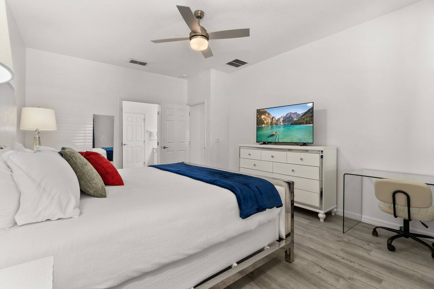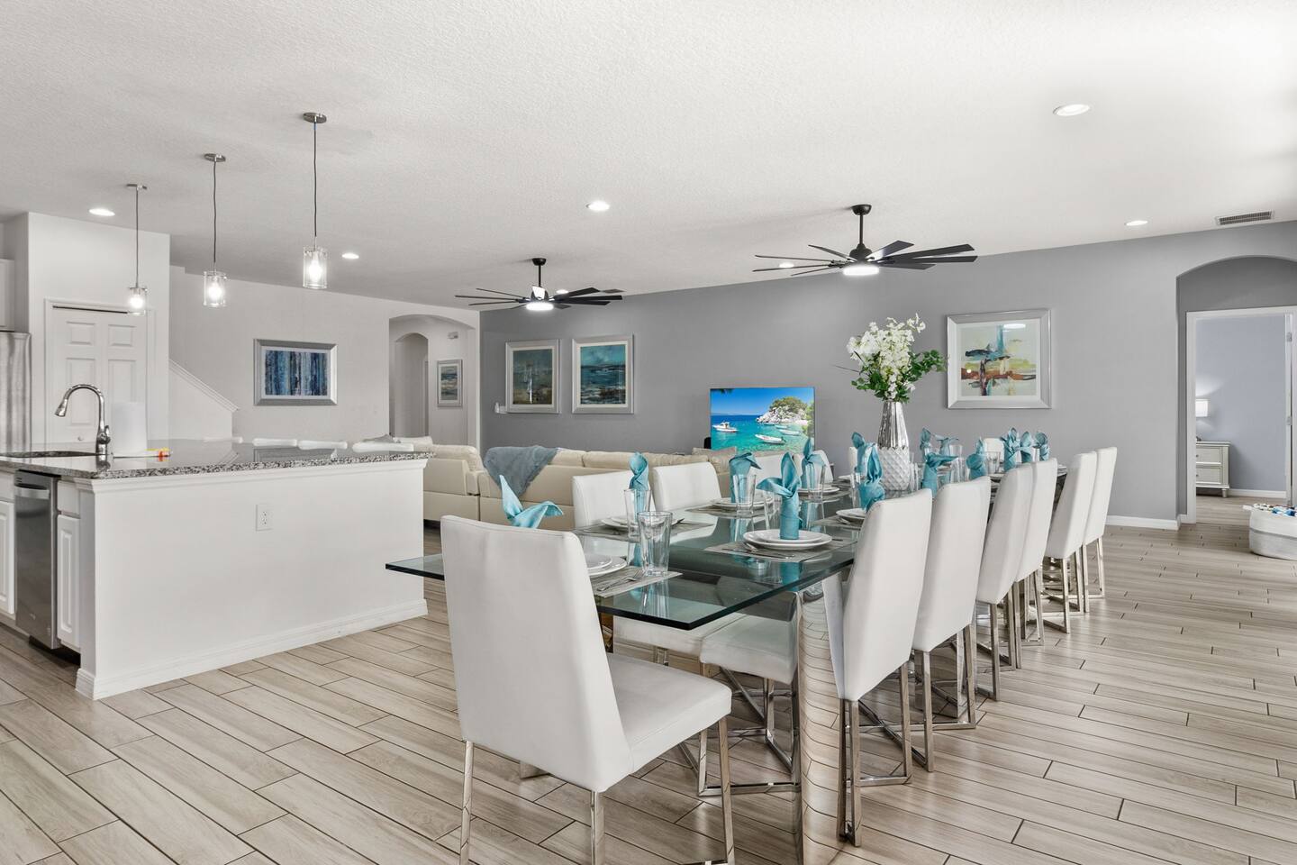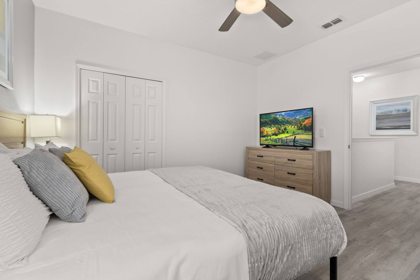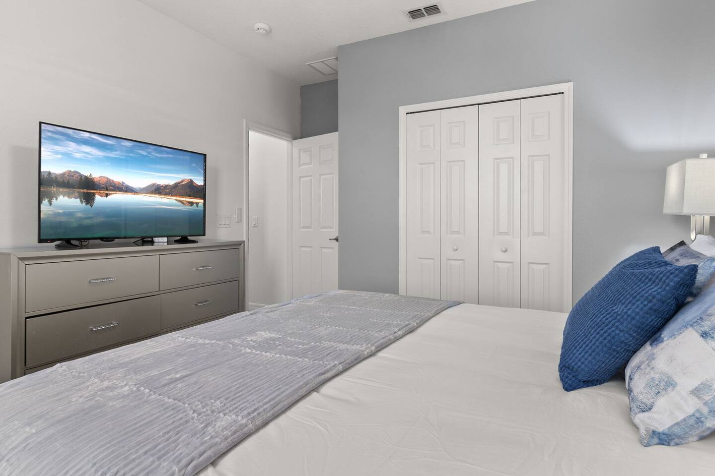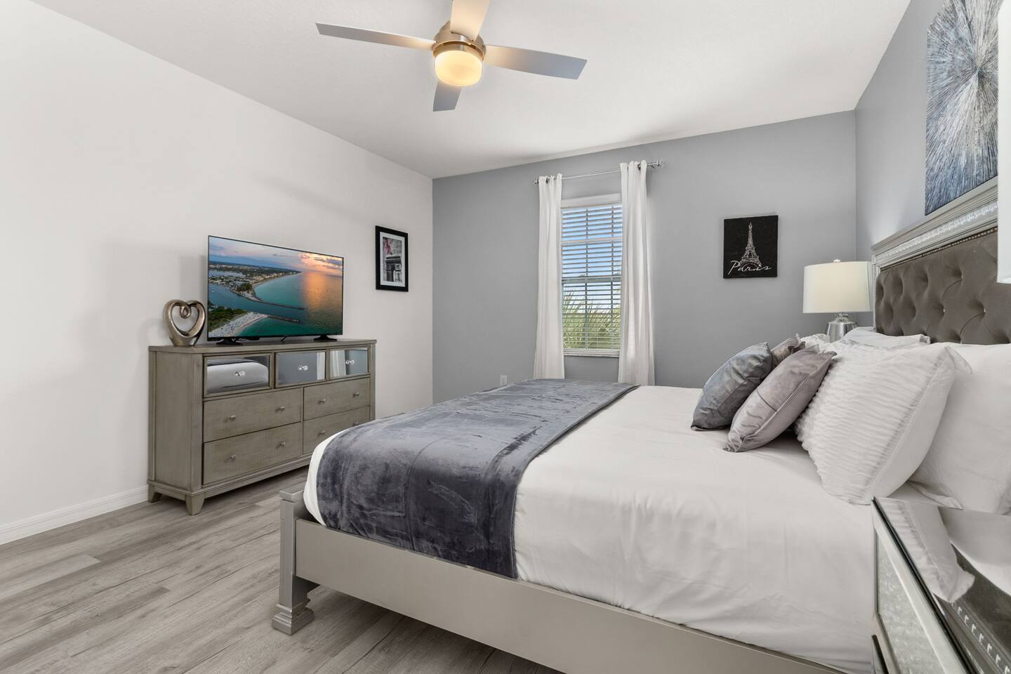 ⭑Master Bedroom:⭑ ✔ Spacious king bed with plush bedding for restful sleep ✔ En-suite spa-style bathroom with soaking tub and walk-in shower ✔ 4K Smart TV, walk-in closet, and room-darkening shades for total comfort ⭑Second Bedroom:⭑ ✔ King bed with high-quality linens and a cozy reading nook ✔ Private en-suite bathroom and Pack 'n Play crib ⭑Third Bedroom:⭑ ✔ Elegant king bed, mosquito net, and generous wardrobe ✔ En-suite with dual sinks and luxurious rainfall shower ⭑Fourth Bedroom:⭑ ✔ King bed with soothing décor and a stylish headboard ✔ Private bathroom with rainfall shower and premium toiletries ⭑Fifth Bedroom:⭑ ✔ King bed with extra pillows and a dedicated writing desk ✔ Sleek en-suite bathroom with a spacious walk-in shower ⭑Sixth Bedroom:⭑ ✔ Second-floor king suite with cozy reading nook and 4K Smart TV ✔ En-suite bathroom with walk-in shower and extra blankets ⭑Seventh Bedroom:⭑ ✔ Vibrant décor with king bed and room-darkening shades ✔ En-suite bathroom featuring a soaking tub and walk-in shower ⭑Eighth Bedroom:⭑ ✔ Twin + full bed combo in a bright, kid-friendly space ✔ Jack and Jill bathroom with bathtub and dual sinks ⭑Ninth Bedroom:⭑ ✔ Two cheerful twin beds and bedside reading lamps ✔ Shares Jack and Jill bathroom—perfect for younger guests ⭑Tenth Bedroom:⭑ ✔ King bed, 4K Smart TV, and dedicated workspace ✔ Shares Jack and Jill bathroom for added convenience ⭑Eleventh Bedroom:⭑ ✔ King bed with cozy reading corner ✔ Shared Jack and Jill bathroom with modern fixtures ⭑Twelfth Bedroom:⭑ ✔ Full-over-full bunk beds in a playful, themed space ✔ Adjacent bathroom with all essentials and kid-friendly design ⭑Thirteenth Bedroom:⭑ ✔ Two twin beds with bright, welcoming decor ✔ Access to shared bathroom with dual sinks ⭑Fourteenth Bedroom:⭑ ✔ Plush king bed with 4K Smart TV and extra closet space ✔ Private en-suite bathroom with modern walk-in shower ⭑Living Room:⭑ ✔ Bright and open space with comfy seating and stylish design ✔ 70” 4K Smart TV, natural light, and easy flow to kitchen and pool ⭑Kitchen and Dining Area:⭑ ✔ Chef’s dream kitchen with double fridges, ovens, and dishwashers ✔ Large island for meal prep and group gatherings ✔ Indoor and outdoor dining tables for memorable meals ⭑Bathrooms:⭑ ✔ 11 stylish bathrooms with shampoo, conditioner, shower gel & more ✔ Hair dryers, fluffy towels, and ample storage throughout ⭑Outdoor Space:⭑ ✔ Private screened-in pool and spa for relaxing any time of day ✔ Lounge chairs, patio dining, and a beautifully landscaped backyard ✔ Access to outdoor resort amenities like playgrounds and fitness center ⭑Additional Amenities:⭑ ✔ Two full laundry rooms with washers and dryers ✔ Baby gear including crib, Pack 'n Play, high chair ✔ Themed kids' rooms, Game Room ⭑Safety and Security:⭑ ✔ Smoke and carbon monoxide detectors ✔ Fire extinguisher and first aid kit included ⭑Entertainment and Connectivity:⭑ ✔ High-speed Wi-Fi and Ethernet ✔ Smart TVs in every room, sound system, game console, and movie theater ✔ Full game room with arcade games and Nintendo Switch ⭑Heating and Cooling:⭑ ✔ Central air conditioning and heating ✔ Ceiling fans and portable fans for personalized comfort ⭑Parking and Facilities:⭑ ✔ Free on-site parking and street parking ✔ Full access to Solterra Resort amenities: gym, pool, clubhouse & more ⭑Services:⭑ ✔ Easy self-check-in with keypad ✔ Luggage drop-off for early or late arrivals ✔ Long-term stays welcome—perfect for work retreats or extended vacations Your stay at Themed Vacation Villa promises luxurious comfort, unforgettable fun, and magical moments for guests of all ages. Book now and elevate your Solterra Resort experience in style! ⭑Conclusion⭑ From the private pool and full-sized game room to the in-home movie theater and spacious dining areas, this villa has everything you need for an unforgettable group getaway. Whether you're planning a family reunion, team retreat, or friends’ escape—reserve your stay today and start your dream vacation!