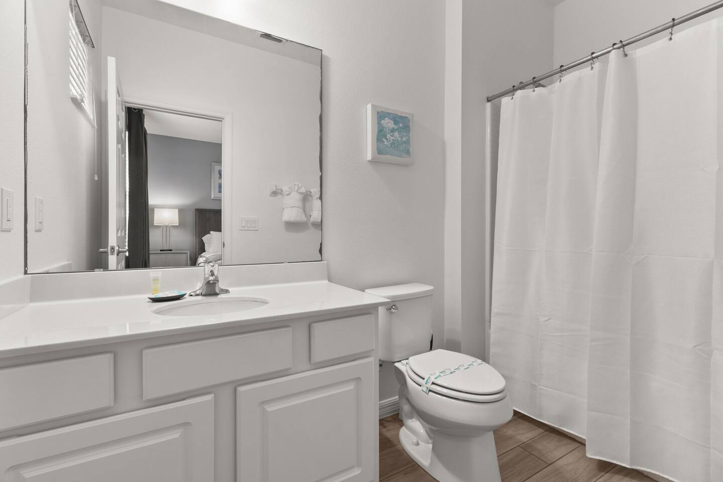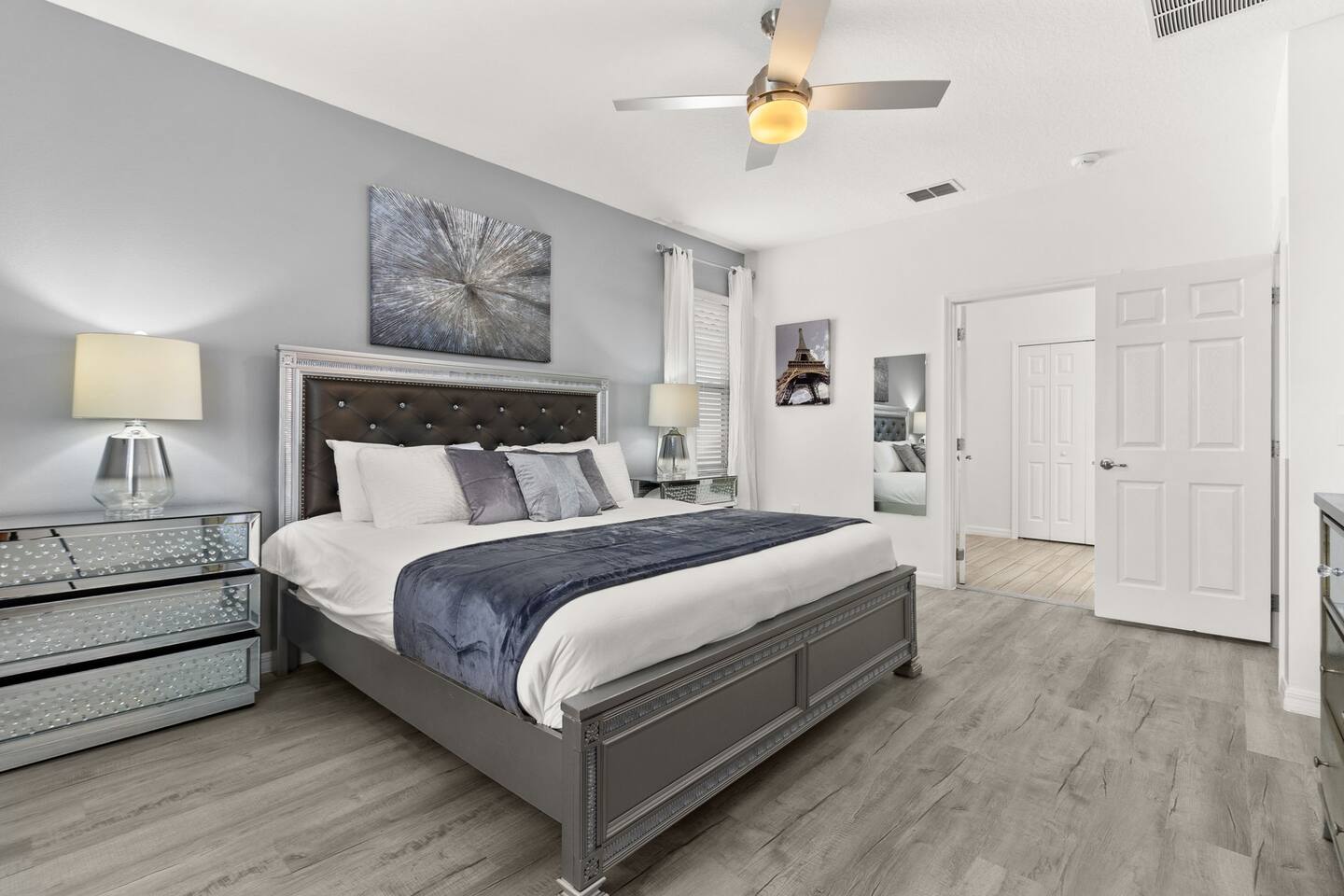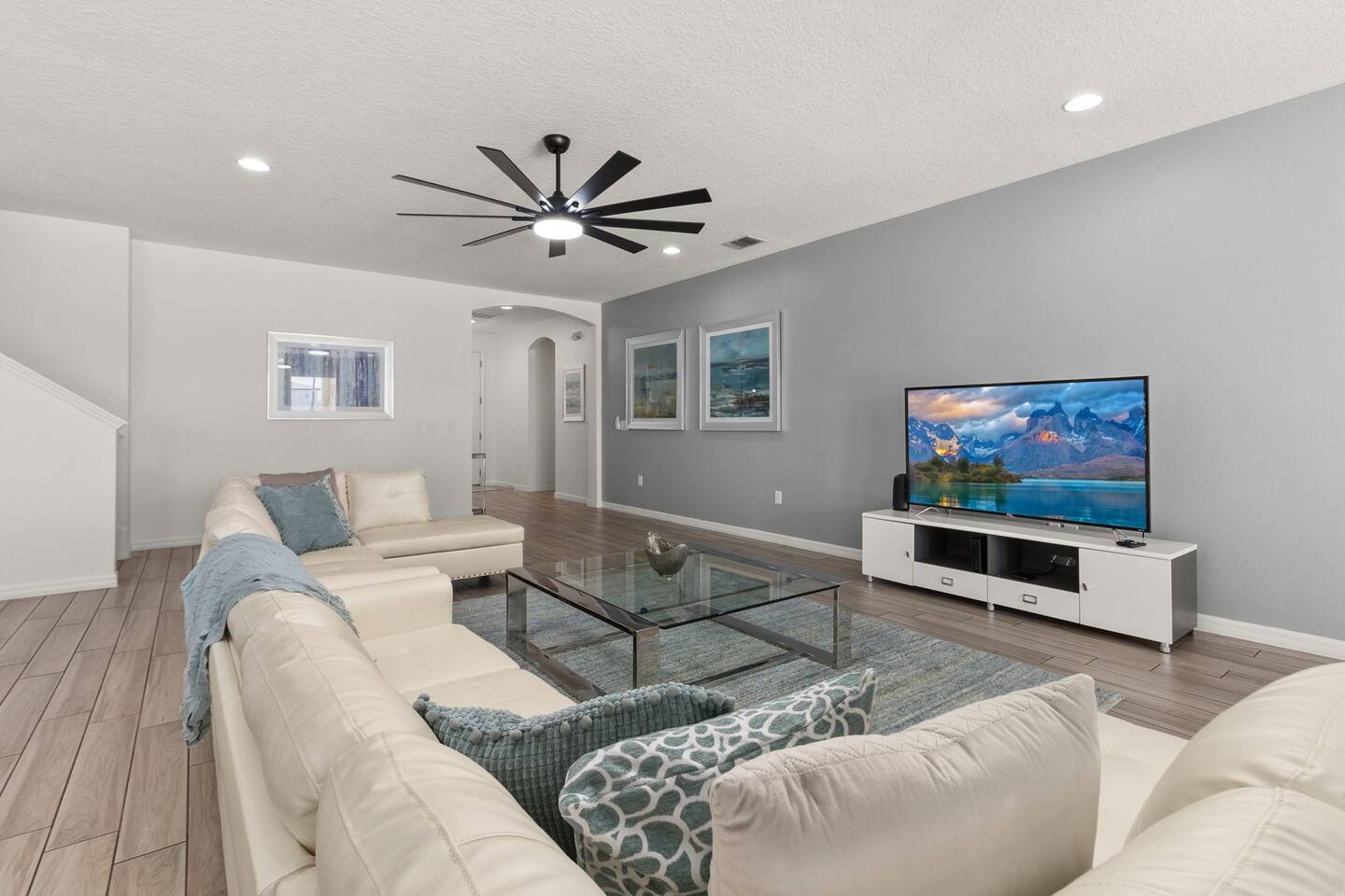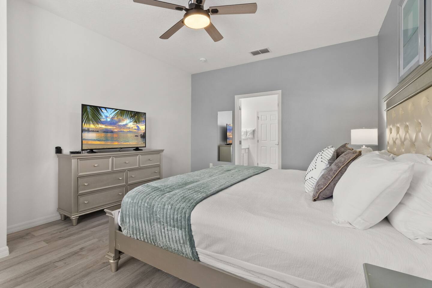 ⭑Master Bedroom:⭑ ✔ Spacious king bed with plush bedding for restful sleep ✔ En-suite spa-style bathroom with soaking tub and walk-in shower ✔ 4K Smart TV, walk-in closet, and room-darkening shades for total comfort ⭑Second Bedroom:⭑ ✔ King bed with high-quality linens and a cozy reading nook ✔ Private en-suite bathroom and Pack 'n Play crib ⭑Third Bedroom:⭑ ✔ Elegant king bed, mosquito net, and generous wardrobe ✔ En-suite with dual sinks and luxurious rainfall shower ⭑Fourth Bedroom:⭑ ✔ King bed with soothing décor and a stylish headboard ✔ Private bathroom with rainfall shower and premium toiletries ⭑Fifth Bedroom:⭑ ✔ King bed with extra pillows and a dedicated writing desk ✔ Sleek en-suite bathroom with a spacious walk-in shower ⭑Sixth Bedroom:⭑ ✔ Second-floor king suite with cozy reading nook and 4K Smart TV ✔ En-suite bathroom with walk-in shower and extra blankets ⭑Seventh Bedroom:⭑ ✔ Vibrant décor with king bed and room-darkening shades ✔ En-suite bathroom featuring a soaking tub and walk-in shower ⭑Eighth Bedroom:⭑ ✔ Twin + full bed combo in a bright, kid-friendly space ✔ Jack and Jill bathroom with bathtub and dual sinks ⭑Ninth Bedroom:⭑ ✔ Two cheerful twin beds and bedside reading lamps ✔ Shares Jack and Jill bathroom—perfect for younger guests ⭑Tenth Bedroom:⭑ ✔ King bed, 4K Smart TV, and dedicated workspace ✔ Shares Jack and Jill bathroom for added convenience ⭑Eleventh Bedroom:⭑ ✔ King bed with cozy reading corner ✔ Shared Jack and Jill bathroom with modern fixtures ⭑Twelfth Bedroom:⭑ ✔ Full-over-full bunk beds in a playful, themed space ✔ Adjacent bathroom with all essentials and kid-friendly design ⭑Thirteenth Bedroom:⭑ ✔ Two twin beds with bright, welcoming decor ✔ Access to shared bathroom with dual sinks ⭑Fourteenth Bedroom:⭑ ✔ Plush king bed with 4K Smart TV and extra closet space ✔ Private en-suite bathroom with modern walk-in shower ⭑Living Room:⭑ ✔ Bright and open space with comfy seating and stylish design ✔ 70” 4K Smart TV, natural light, and easy flow to kitchen and pool ⭑Kitchen and Dining Area:⭑ ✔ Chef’s dream kitchen with double fridges, ovens, and dishwashers ✔ Large island for meal prep and group gatherings ✔ Indoor and outdoor dining tables for memorable meals ⭑Bathrooms:⭑ ✔ 11 stylish bathrooms with shampoo, conditioner, shower gel & more ✔ Hair dryers, fluffy towels, and ample storage throughout ⭑Outdoor Space:⭑ ✔ Private screened-in pool and spa for relaxing any time of day ✔ Lounge chairs, patio dining, and a beautifully landscaped backyard ✔ Access to outdoor resort amenities like playgrounds and fitness center ⭑Additional Amenities:⭑ ✔ Two full laundry rooms with washers and dryers ✔ Baby gear including crib, Pack 'n Play, high chair ✔ Themed kids' rooms, Game Room ⭑Safety and Security:⭑ ✔ Smoke and carbon monoxide detectors ✔ Fire extinguisher and first aid kit included ⭑Entertainment and Connectivity:⭑ ✔ High-speed Wi-Fi and Ethernet ✔ Smart TVs in every room, sound system, game console, and movie theater ✔ Full game room with arcade games and Nintendo Switch ⭑Heating and Cooling:⭑ ✔ Central air conditioning and heating ✔ Ceiling fans and portable fans for personalized comfort ⭑Parking and Facilities:⭑ ✔ Free on-site parking and street parking ✔ Full access to Solterra Resort amenities: gym, pool, clubhouse & more ⭑Services:⭑ ✔ Easy self-check-in with keypad ✔ Luggage drop-off for early or late arrivals ✔ Long-term stays welcome—perfect for work retreats or extended vacations Your stay at Themed Vacation Villa promises luxurious comfort, unforgettable fun, and magical moments for guests of all ages. Book now and elevate your Solterra Resort experience in style! ⭑Conclusion⭑ From the private pool and full-sized game room to the in-home movie theater and spacious dining areas, this villa has everything you need for an unforgettable group getaway. Whether you're planning a family reunion, team retreat, or friends’ escape—reserve your stay today and start your dream vacation!