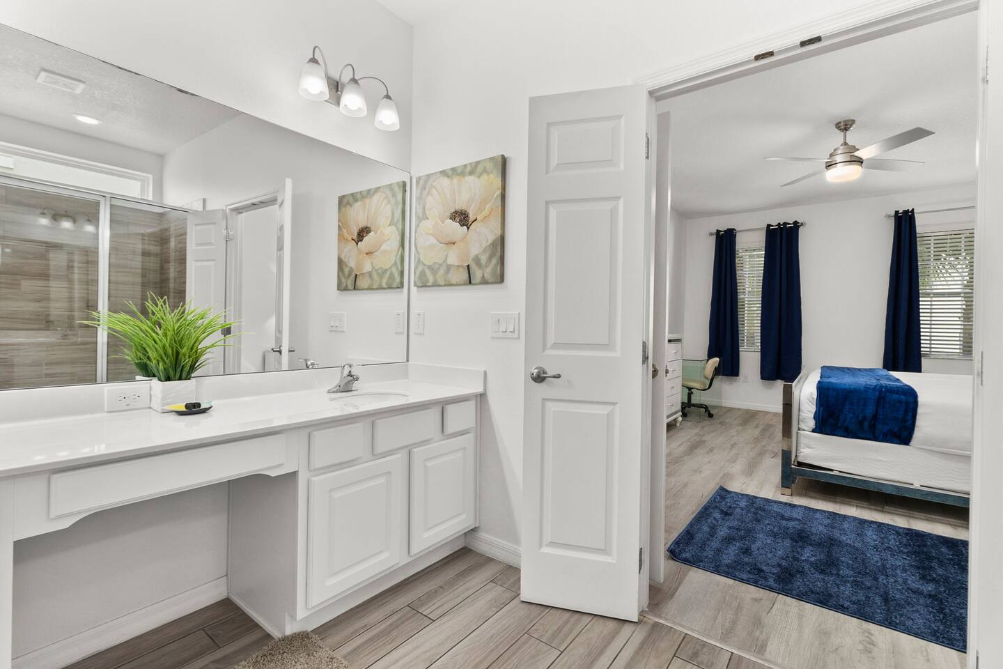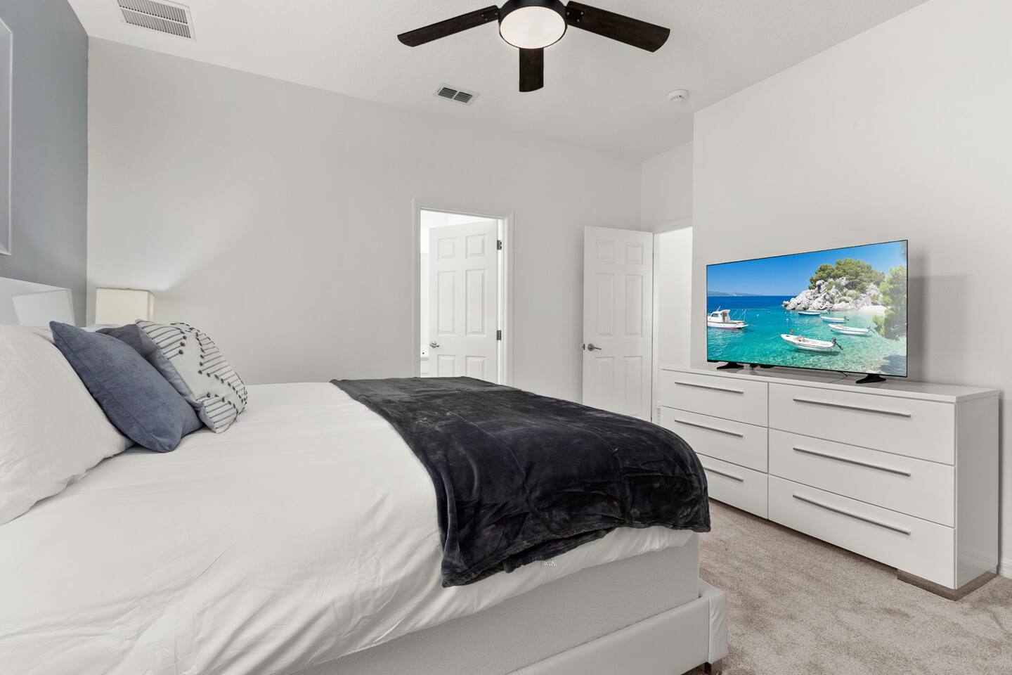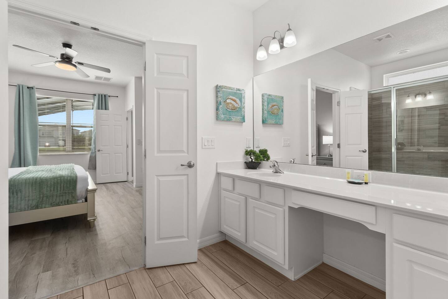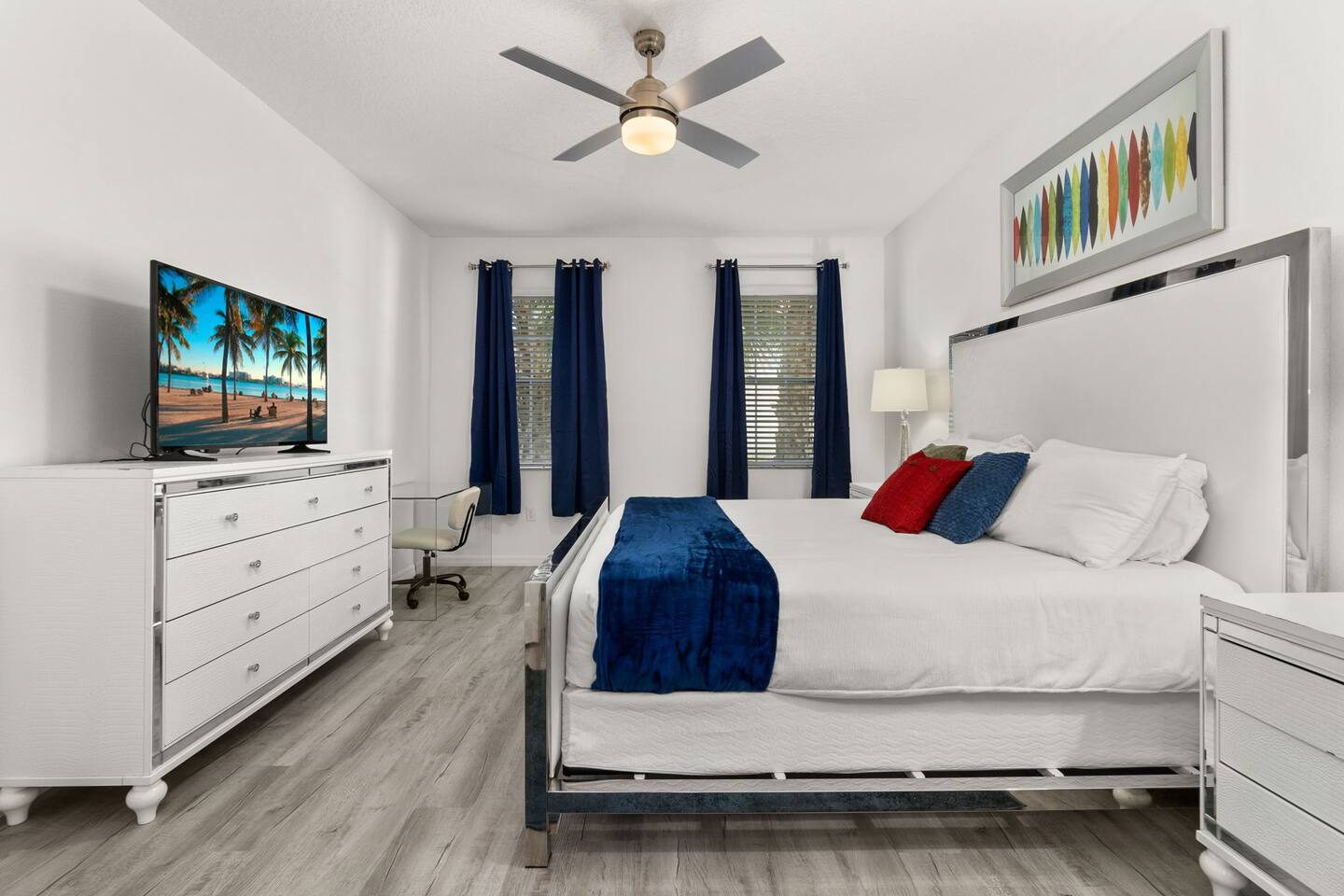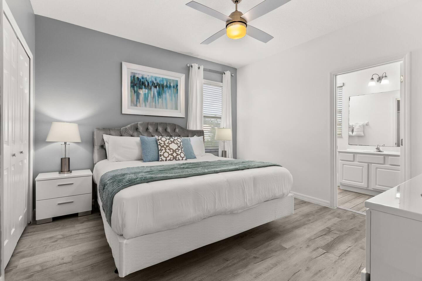 ⭑Master Bedroom:⭑ ✔ Spacious king bed with plush bedding for restful sleep ✔ En-suite spa-style bathroom with soaking tub and walk-in shower ✔ 4K Smart TV, walk-in closet, and room-darkening shades for total comfort ⭑Second Bedroom:⭑ ✔ King bed with high-quality linens and a cozy reading nook ✔ Private en-suite bathroom and Pack 'n Play crib ⭑Third Bedroom:⭑ ✔ Elegant king bed, mosquito net, and generous wardrobe ✔ En-suite with dual sinks and luxurious rainfall shower ⭑Fourth Bedroom:⭑ ✔ King bed with soothing décor and a stylish headboard ✔ Private bathroom with rainfall shower and premium toiletries ⭑Fifth Bedroom:⭑ ✔ King bed with extra pillows and a dedicated writing desk ✔ Sleek en-suite bathroom with a spacious walk-in shower ⭑Sixth Bedroom:⭑ ✔ Second-floor king suite with cozy reading nook and 4K Smart TV ✔ En-suite bathroom with walk-in shower and extra blankets ⭑Seventh Bedroom:⭑ ✔ Vibrant décor with king bed and room-darkening shades ✔ En-suite bathroom featuring a soaking tub and walk-in shower ⭑Eighth Bedroom:⭑ ✔ Twin + full bed combo in a bright, kid-friendly space ✔ Jack and Jill bathroom with bathtub and dual sinks ⭑Ninth Bedroom:⭑ ✔ Two cheerful twin beds and bedside reading lamps ✔ Shares Jack and Jill bathroom—perfect for younger guests ⭑Tenth Bedroom:⭑ ✔ King bed, 4K Smart TV, and dedicated workspace ✔ Shares Jack and Jill bathroom for added convenience ⭑Eleventh Bedroom:⭑ ✔ King bed with cozy reading corner ✔ Shared Jack and Jill bathroom with modern fixtures ⭑Twelfth Bedroom:⭑ ✔ Full-over-full bunk beds in a playful, themed space ✔ Adjacent bathroom with all essentials and kid-friendly design ⭑Thirteenth Bedroom:⭑ ✔ Two twin beds with bright, welcoming decor ✔ Access to shared bathroom with dual sinks ⭑Fourteenth Bedroom:⭑ ✔ Plush king bed with 4K Smart TV and extra closet space ✔ Private en-suite bathroom with modern walk-in shower ⭑Living Room:⭑ ✔ Bright and open space with comfy seating and stylish design ✔ 70” 4K Smart TV, natural light, and easy flow to kitchen and pool ⭑Kitchen and Dining Area:⭑ ✔ Chef’s dream kitchen with double fridges, ovens, and dishwashers ✔ Large island for meal prep and group gatherings ✔ Indoor and outdoor dining tables for memorable meals ⭑Bathrooms:⭑ ✔ 11 stylish bathrooms with shampoo, conditioner, shower gel & more ✔ Hair dryers, fluffy towels, and ample storage throughout ⭑Outdoor Space:⭑ ✔ Private screened-in pool and spa for relaxing any time of day ✔ Lounge chairs, patio dining, and a beautifully landscaped backyard ✔ Access to outdoor resort amenities like playgrounds and fitness center ⭑Additional Amenities:⭑ ✔ Two full laundry rooms with washers and dryers ✔ Baby gear including crib, Pack 'n Play, high chair ✔ Themed kids' rooms, Game Room ⭑Safety and Security:⭑ ✔ Smoke and carbon monoxide detectors ✔ Fire extinguisher and first aid kit included ⭑Entertainment and Connectivity:⭑ ✔ High-speed Wi-Fi and Ethernet ✔ Smart TVs in every room, sound system, game console, and movie theater ✔ Full game room with arcade games and Nintendo Switch ⭑Heating and Cooling:⭑ ✔ Central air conditioning and heating ✔ Ceiling fans and portable fans for personalized comfort ⭑Parking and Facilities:⭑ ✔ Free on-site parking and street parking ✔ Full access to Solterra Resort amenities: gym, pool, clubhouse & more ⭑Services:⭑ ✔ Easy self-check-in with keypad ✔ Luggage drop-off for early or late arrivals ✔ Long-term stays welcome—perfect for work retreats or extended vacations Your stay at Themed Vacation Villa promises luxurious comfort, unforgettable fun, and magical moments for guests of all ages. Book now and elevate your Solterra Resort experience in style! ⭑Conclusion⭑ From the private pool and full-sized game room to the in-home movie theater and spacious dining areas, this villa has everything you need for an unforgettable group getaway. Whether you're planning a family reunion, team retreat, or friends’ escape—reserve your stay today and start your dream vacation!