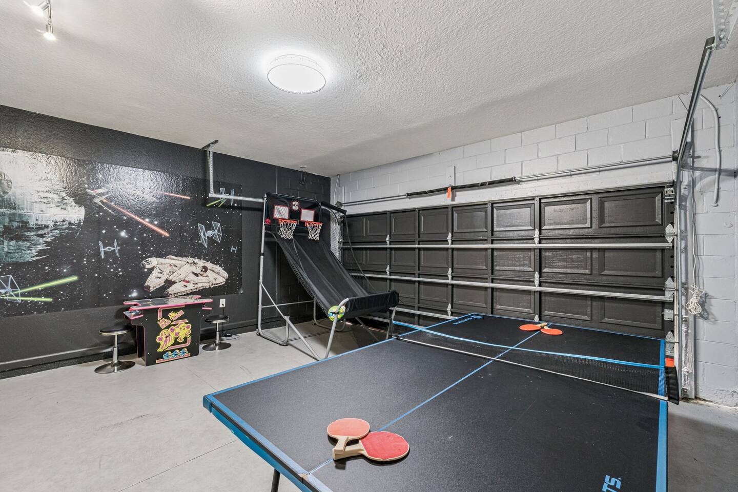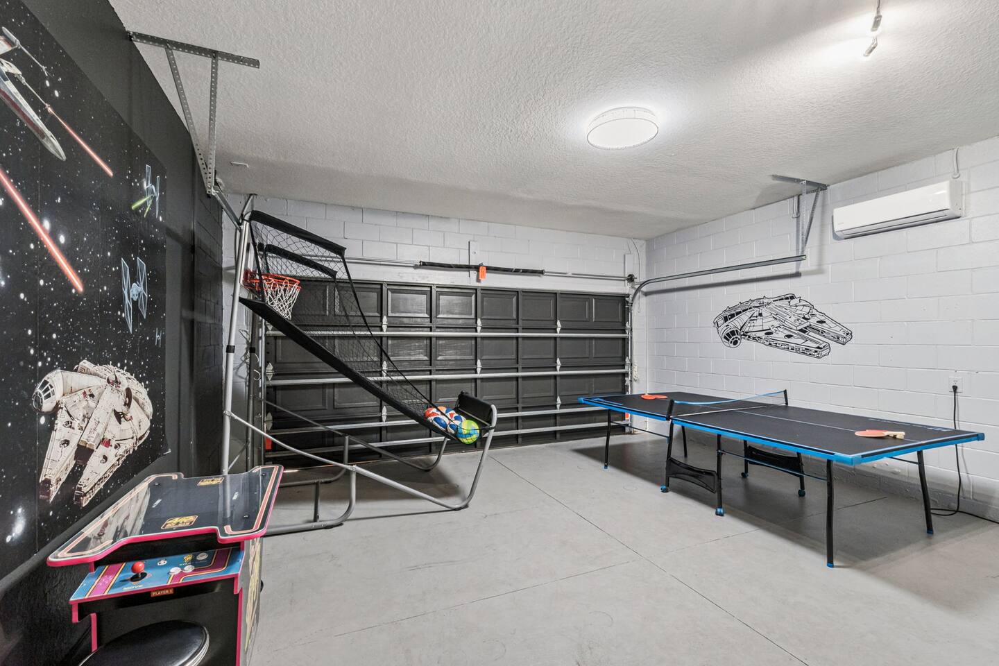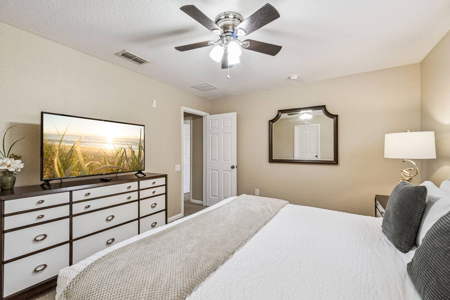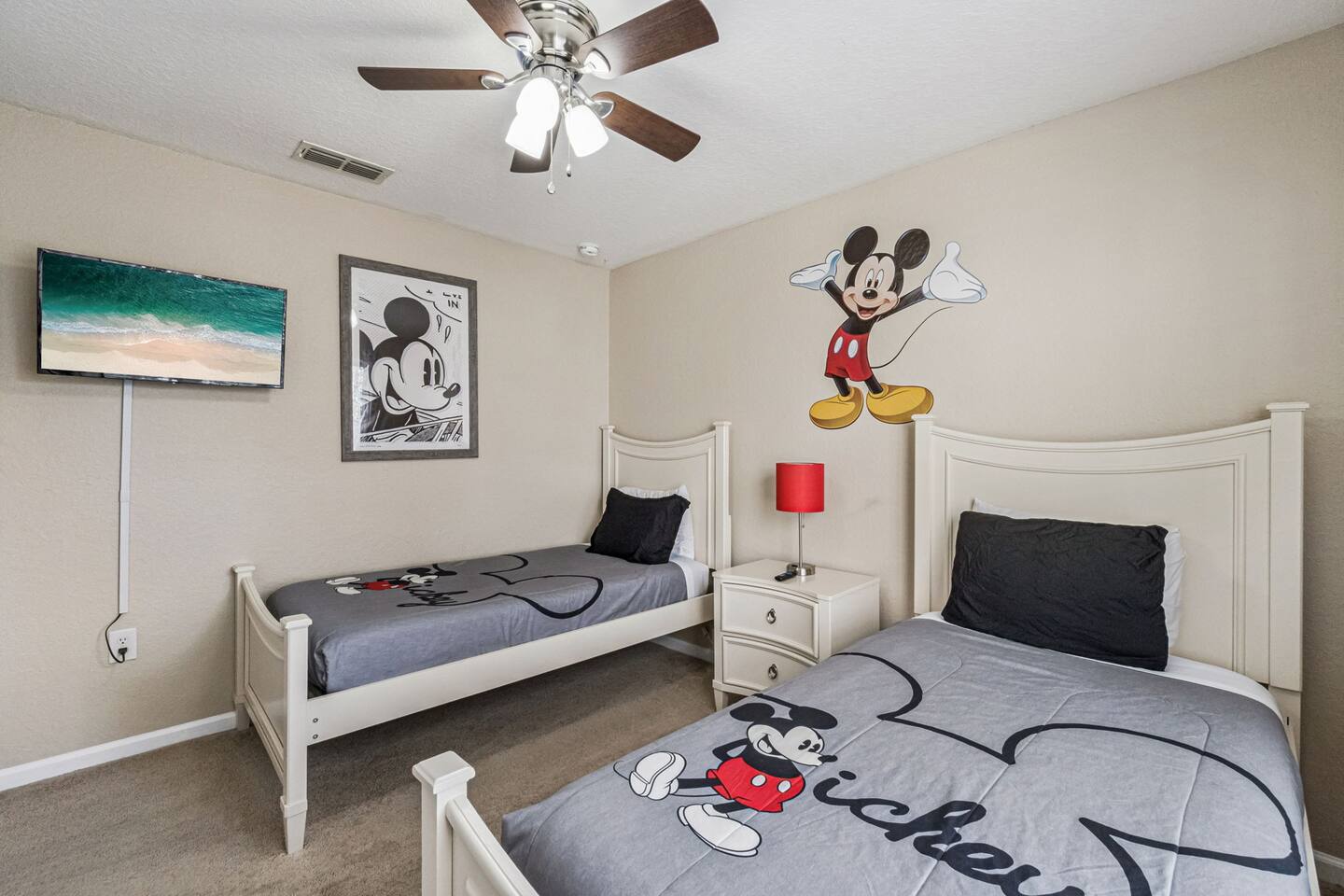 ⭑Master Bedroom:⭑ ✔ Unwind in a plush king-size bed with premium linens ✔ En-suite bathroom with walk-in shower and soaking tub ✔ HDTV with streaming access and spacious closet ⭑Second Bedroom:⭑ ✔ Cozy king-size bed and HDTV for relaxing nights ✔ Shared access to a full bathroom with modern finishes ⭑Third Bedroom:⭑ ✔ King-size bed and easy access to a shared bathroom ✔ HDTV with cable and streaming for ultimate comfort ⭑Fourth Bedroom:⭑ ✔ Queen-size bed with ample closet space ✔ In-room HDTV and nearby full bathroom access ⭑Fifth Bedroom (Disney-Themed):⭑ ✔ Twin beds with magical Disney decor that kids will love ✔ HDTV perfect for movie marathons and cartoons ⭑Sixth Bedroom (Disney-Themed):⭑ ✔ Bright twin beds with whimsical Disney accents ✔ Fun and cozy space with HDTV included ⭑Living Room:⭑ ✔ Spacious, sunlit seating area perfect for family gatherings ✔ Large HDTV with streaming and cable options ✔ Beautiful views of your private pool and easy outdoor access ⭑Kitchen and Dining Area:⭑ ✔ Fully equipped kitchen with stainless steel appliances ✔ Granite counters, breakfast bar, and everything you need to cook ✔ Dining table for 8 and extra seating for 4 at the bar ⭑Bathrooms:⭑ ✔ Four full bathrooms stocked with towels and essentials ✔ Hair dryers, toiletries, and plenty of space for everyone ⭑Outdoor Space:⭑ ✔ Private screened-in pool and spa with FREE heating ✔ Outdoor dining area, sun loungers, and child safety fence ✔ Perfect spot for relaxing after the parks ⭑Additional Amenities:⭑ ✔ Legends Ultimate Arcade System for all-ages gaming ✔ Game room with air hockey, ping pong, and basketball shootout ✔ Washer and dryer available for your convenience ⭑Safety and Security:⭑ ✔ Gated community with 24/7 security for peace of mind ✔ Child-friendly features including pool safety fencing ⭑Entertainment and Connectivity:⭑ ✔ High-speed Wi-Fi throughout the home ✔ Smart HDTVs in every room with access to Netflix, Hulu, and more ⭑Heating and Cooling:⭑ ✔ Central air conditioning and heating for year-round comfort ⭑Parking and Facilities:⭑ ✔ Free on-site parking for multiple vehicles ✔ Full access to Windsor Hills Resort amenities: ✔ Waterpark, lagoon-style pool, gym, movie theater, tennis, basketball, and volleyball courts ⭑Services:⭑ ✔ Flexible self-check-in via keypad ✔ Professionally cleaned with enhanced sanitization protocols ✔ Optional pool heat available ($35/night upon request) Your stay at Windsor Hills Villa promises unbeatable comfort, magical touches, and a family-friendly escape just minutes from Disney. Book now and make your dream vacation a reality! ⭑Conclusion⭑ Whether you're enjoying a poolside afternoon, challenging the kids in the game room, or soaking in the hot tub after the parks—this villa has it all. Don’t wait—reserve your stay today and get ready to make unforgettable memories near Disney!